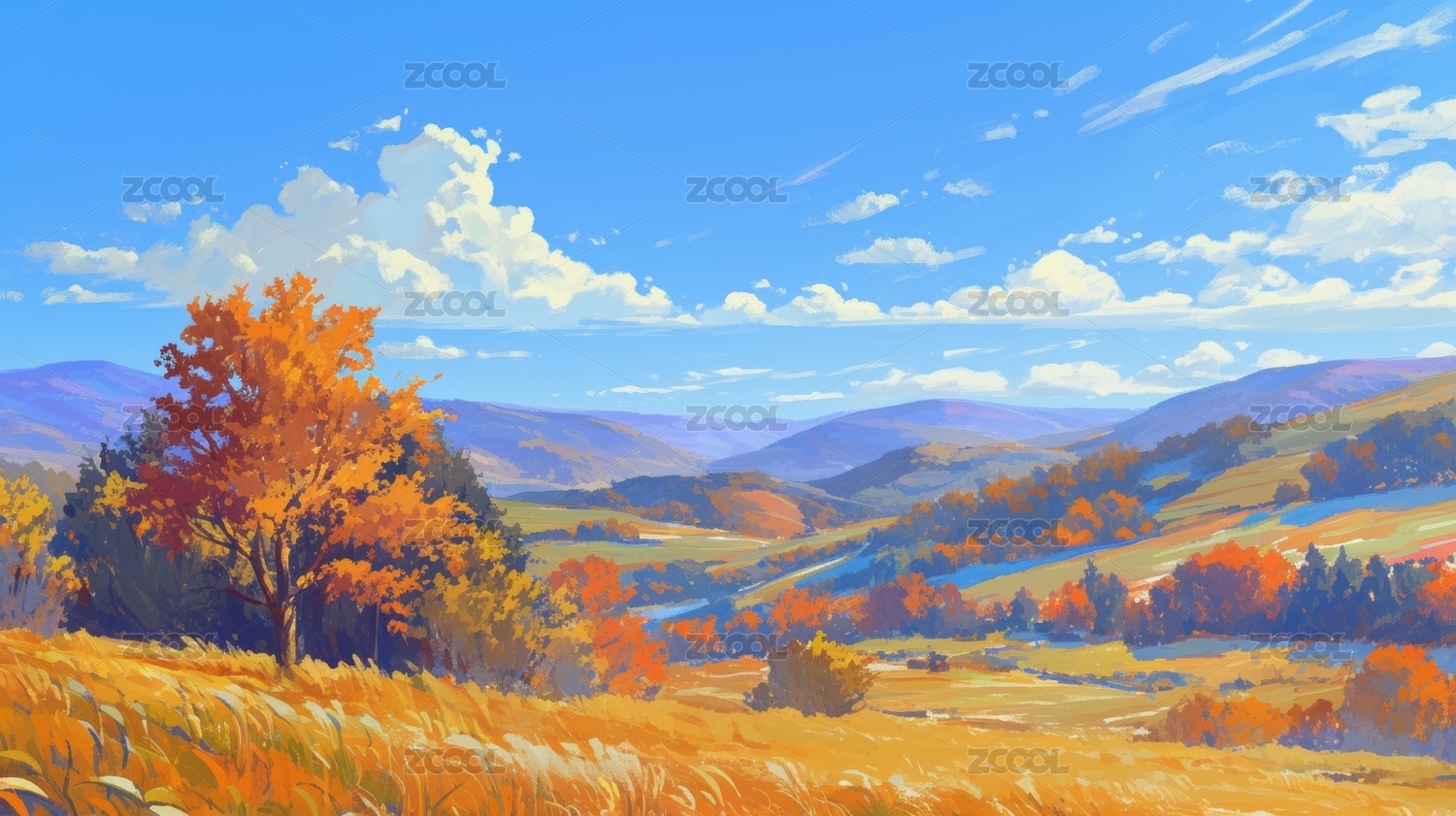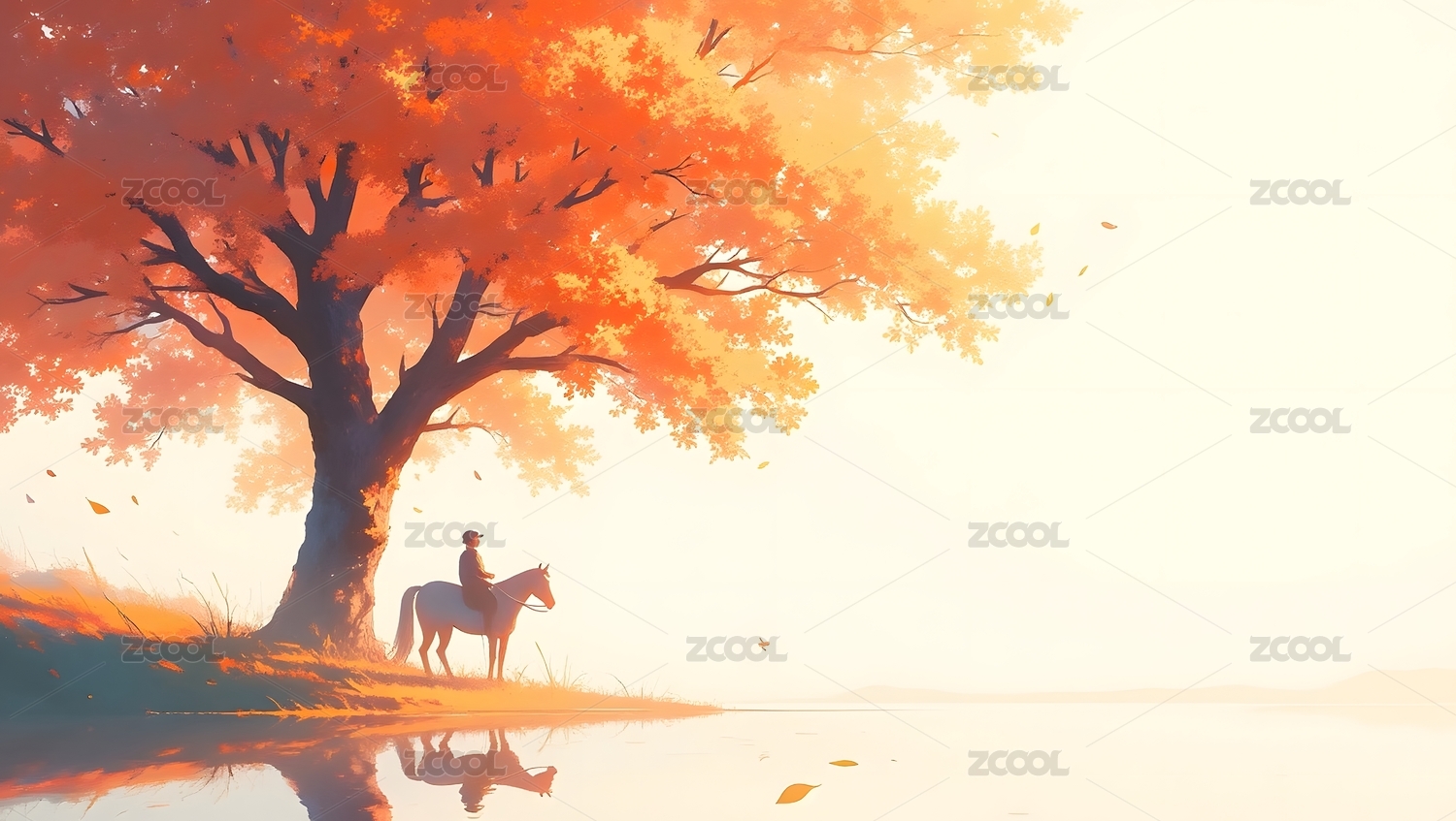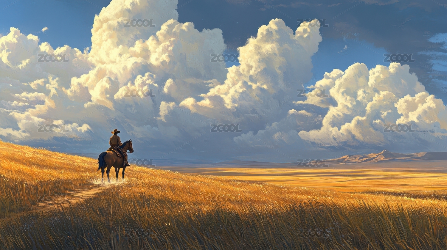 AIGC202402,秋分,寒露,秋天,插画,田野,骑马,情侣,自由