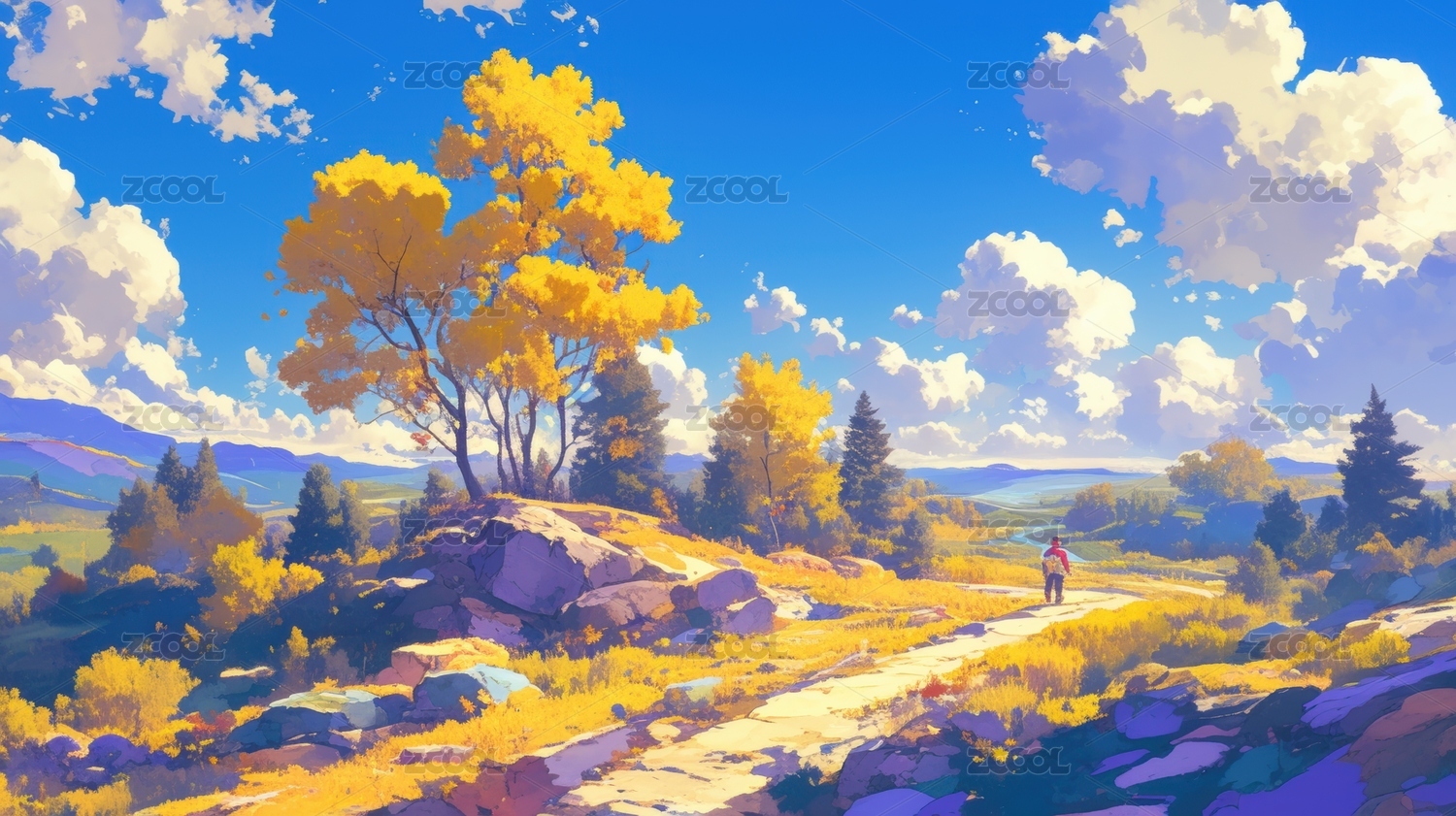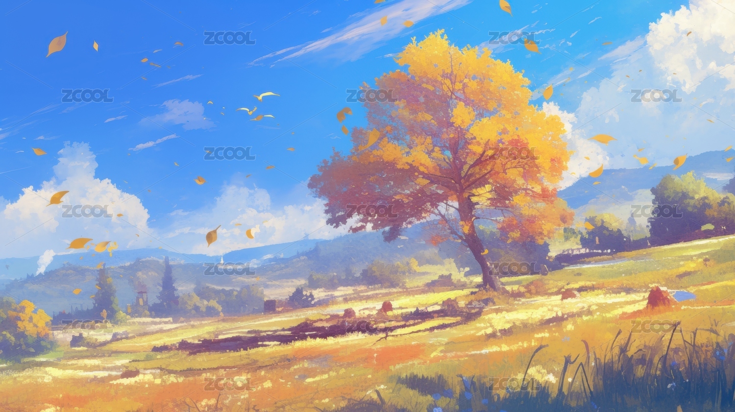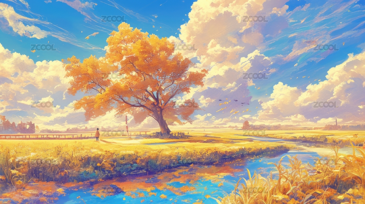 AIGC202402,秋分,寒露,秋天,插画,田野,骑马,情侣,自由
