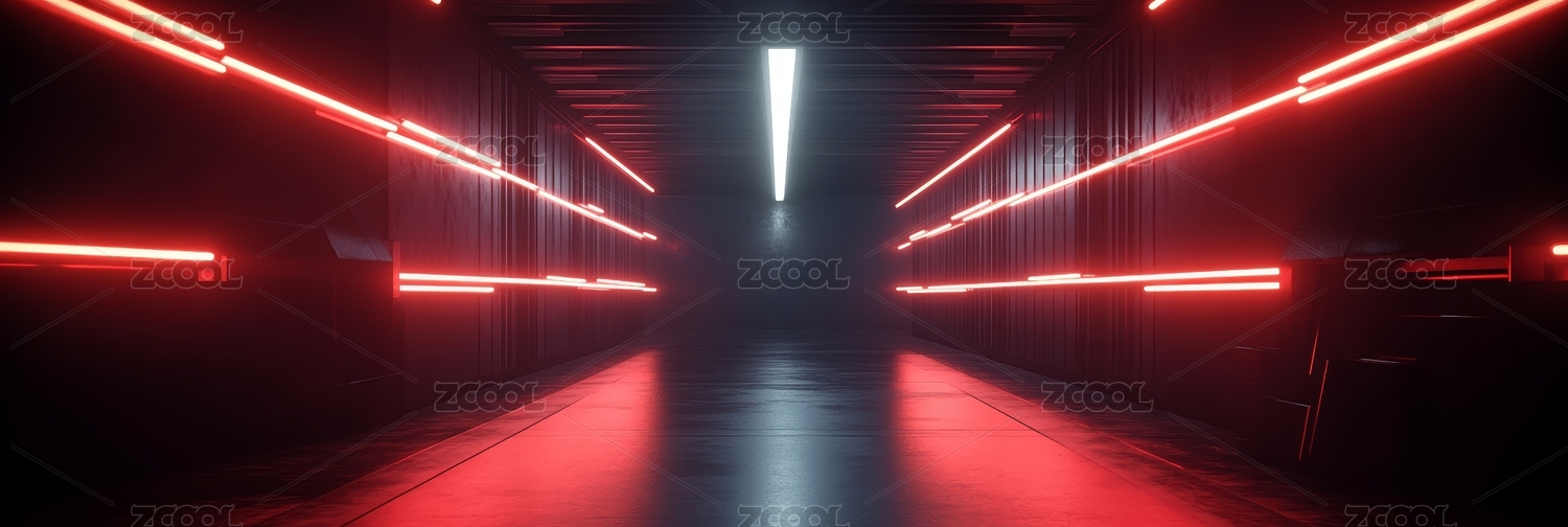 霓虹灯走廊的未来科技场景
