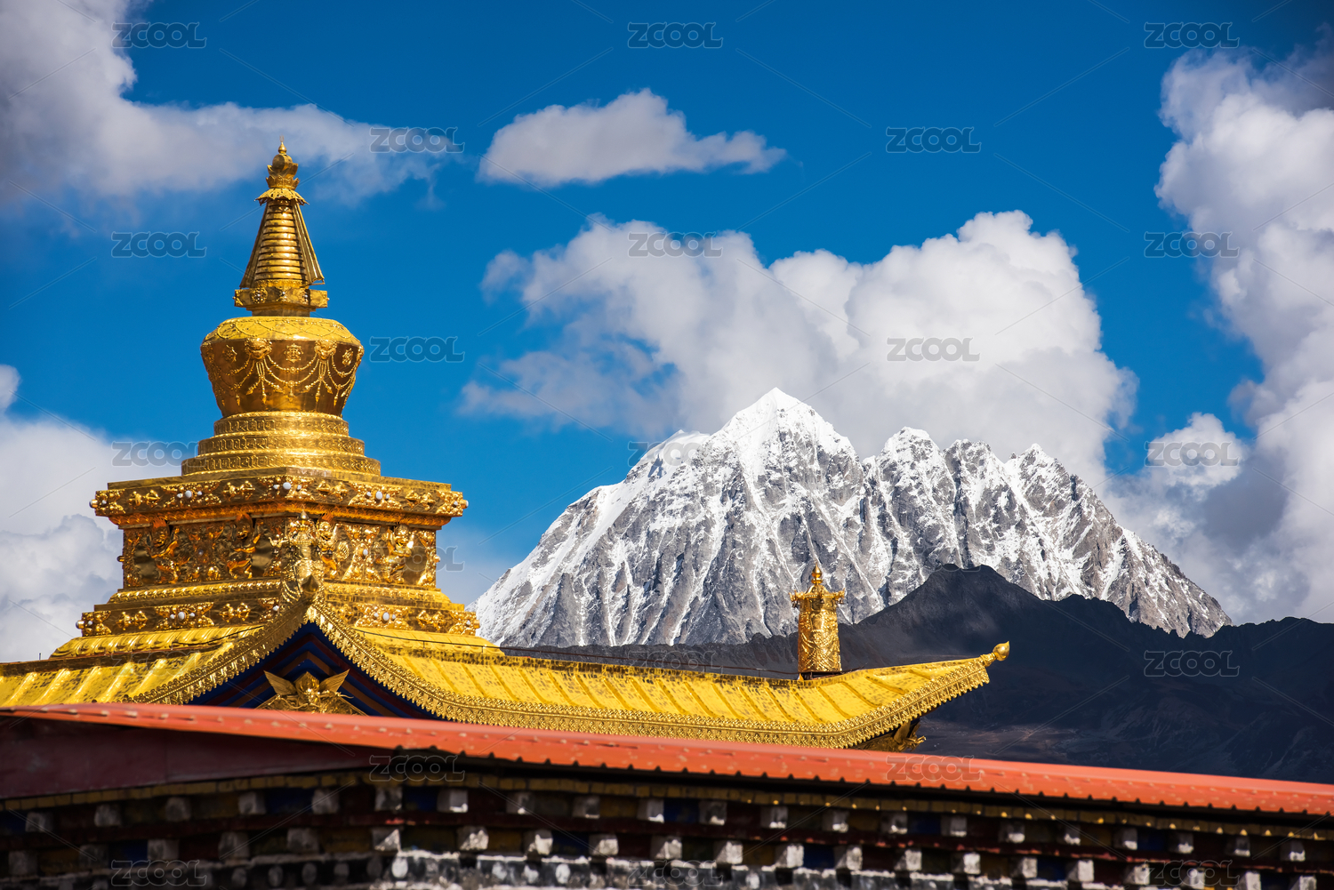 中国四川甘孜康定县塔公寺雅拉雪山自然建筑风光