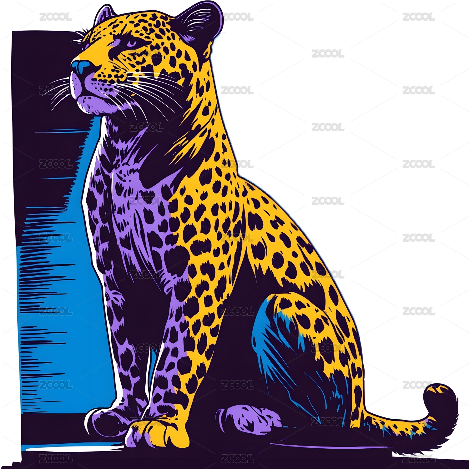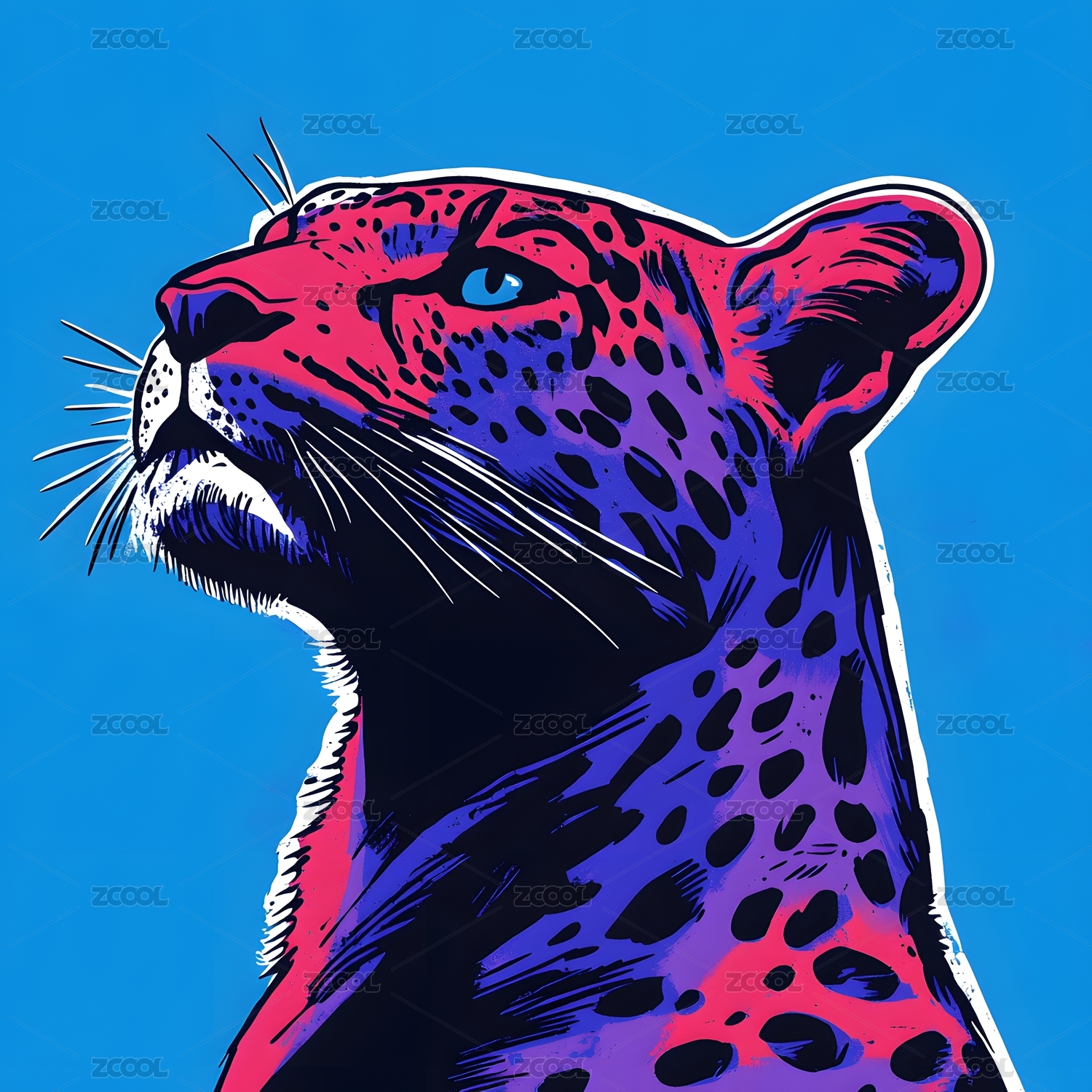 粉蓝色赛博风格金钱猎豹图案印花T恤壁纸
