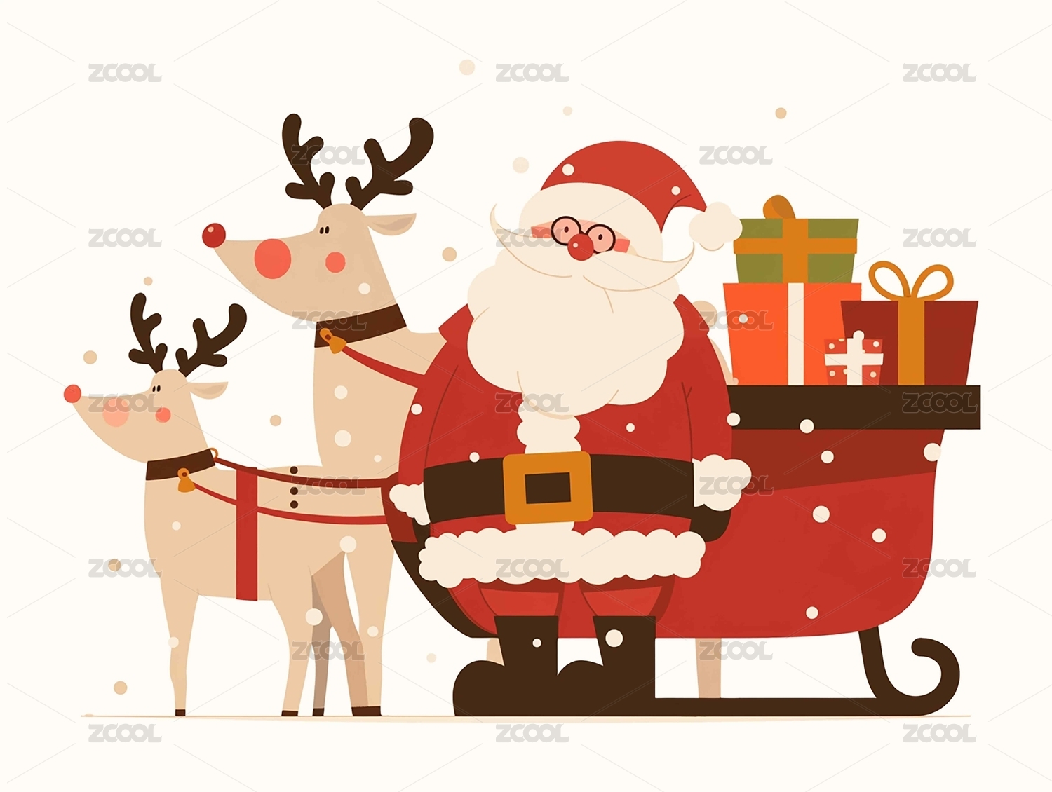 卡通圣诞老人驯鹿白色背景服装图案插画
