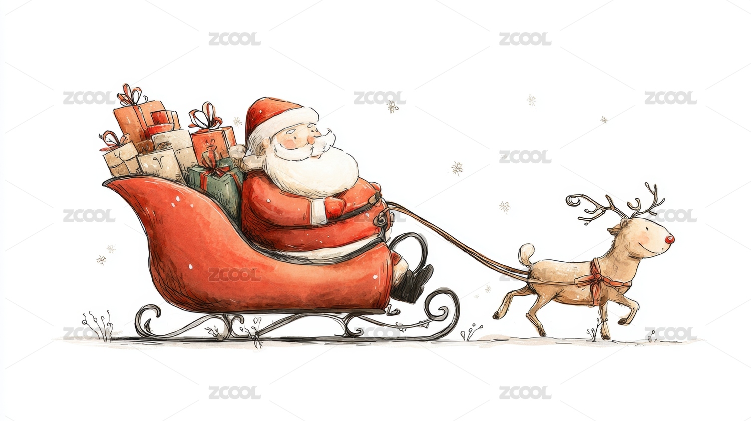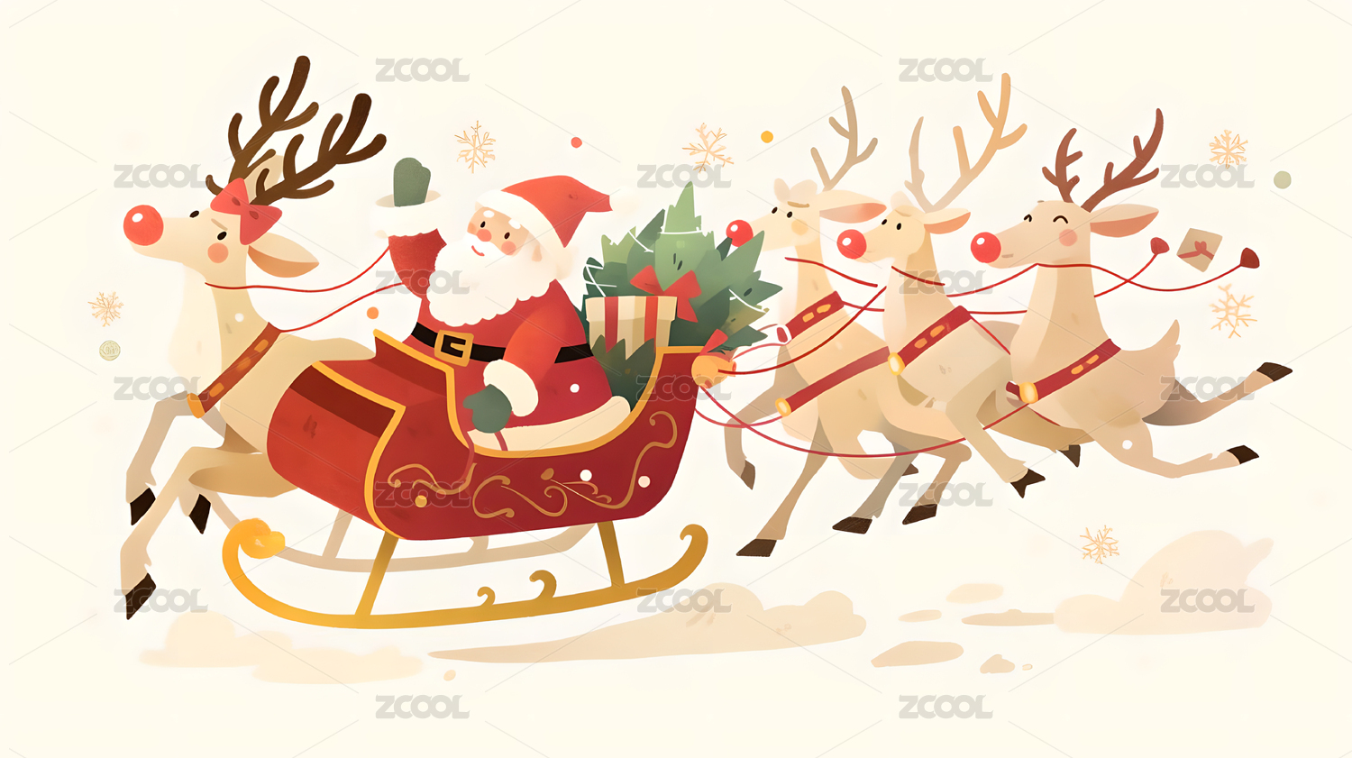 圣诞老人驾鹿拉雪橇