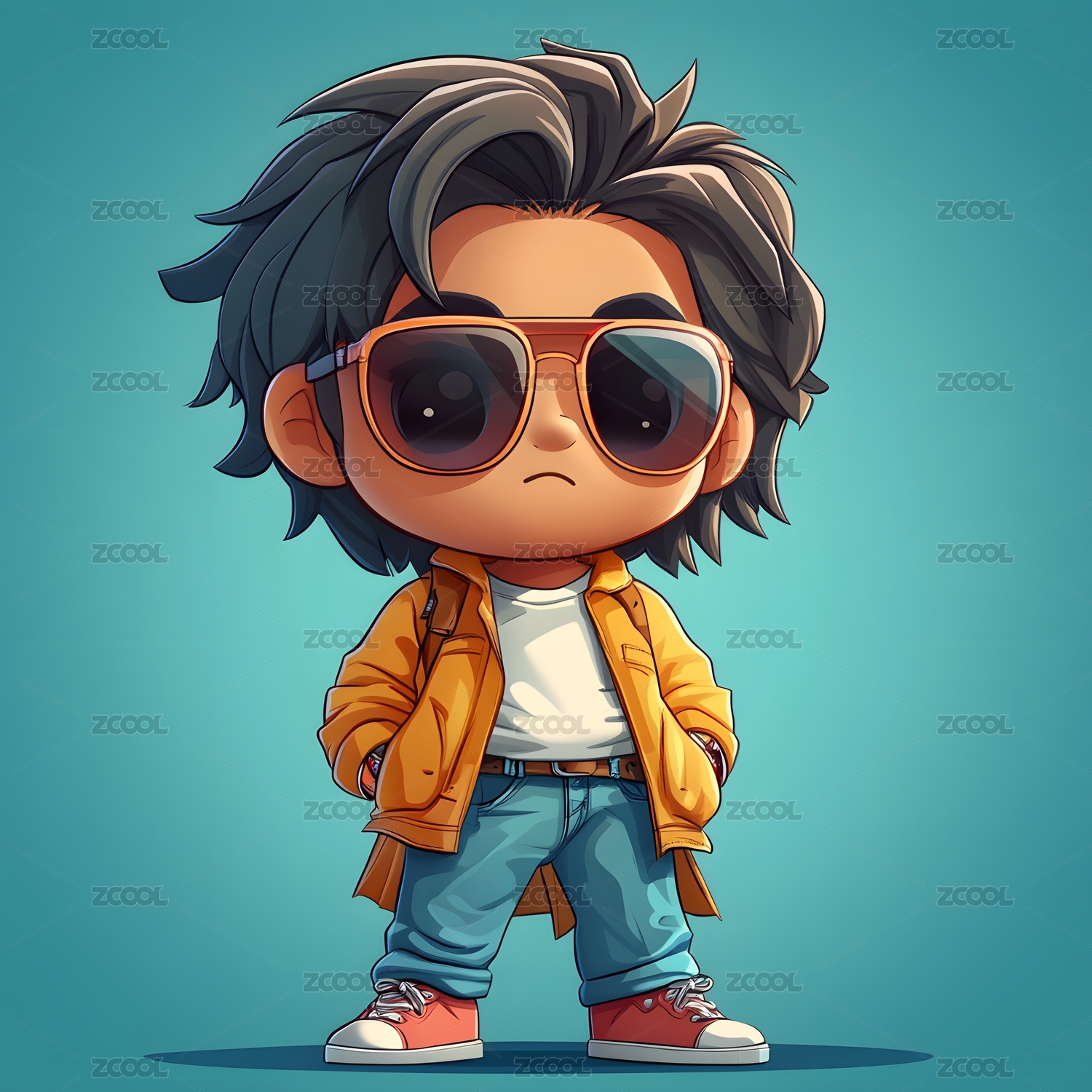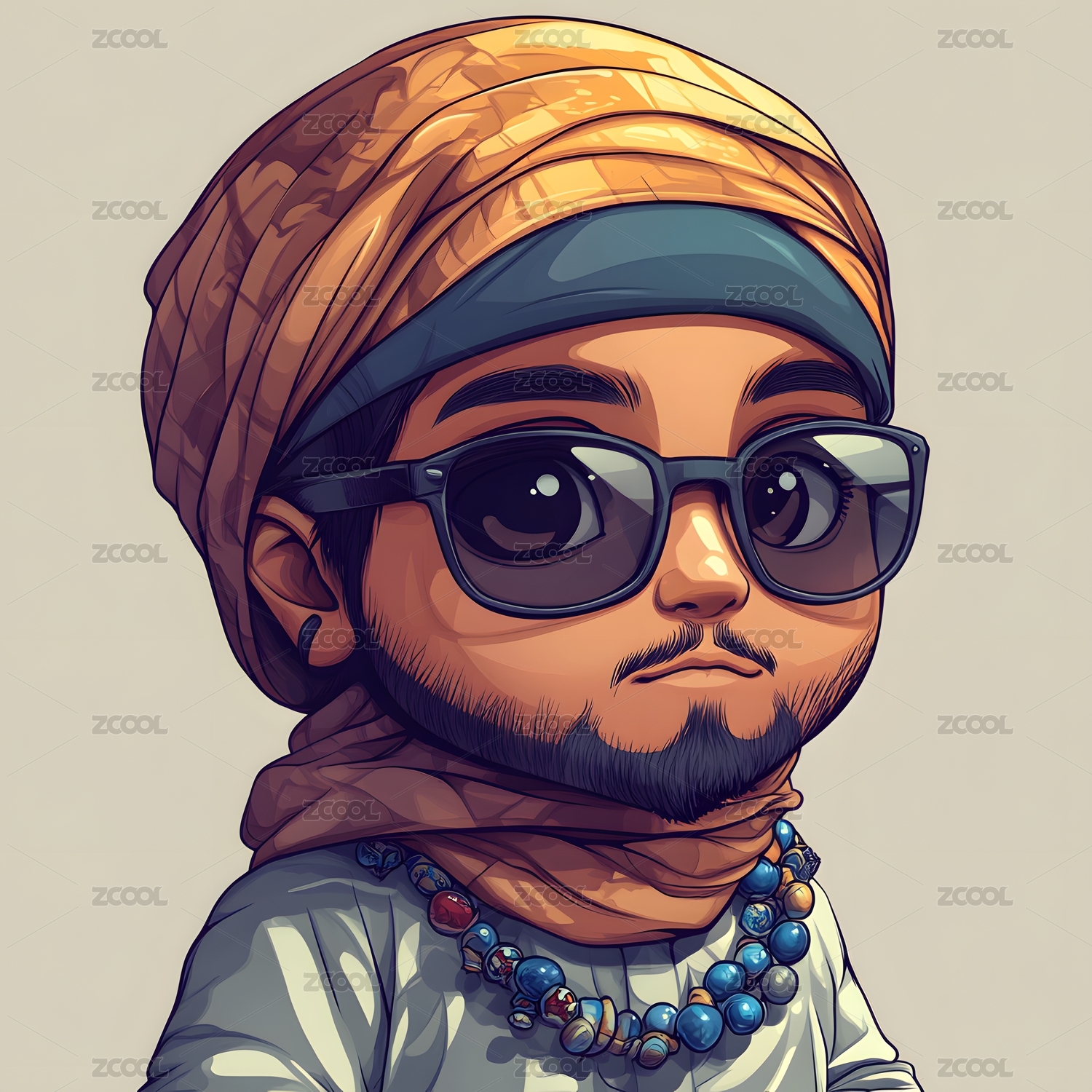 夏威夷风格穿花衬衫带棒球帽的男孩头像插画