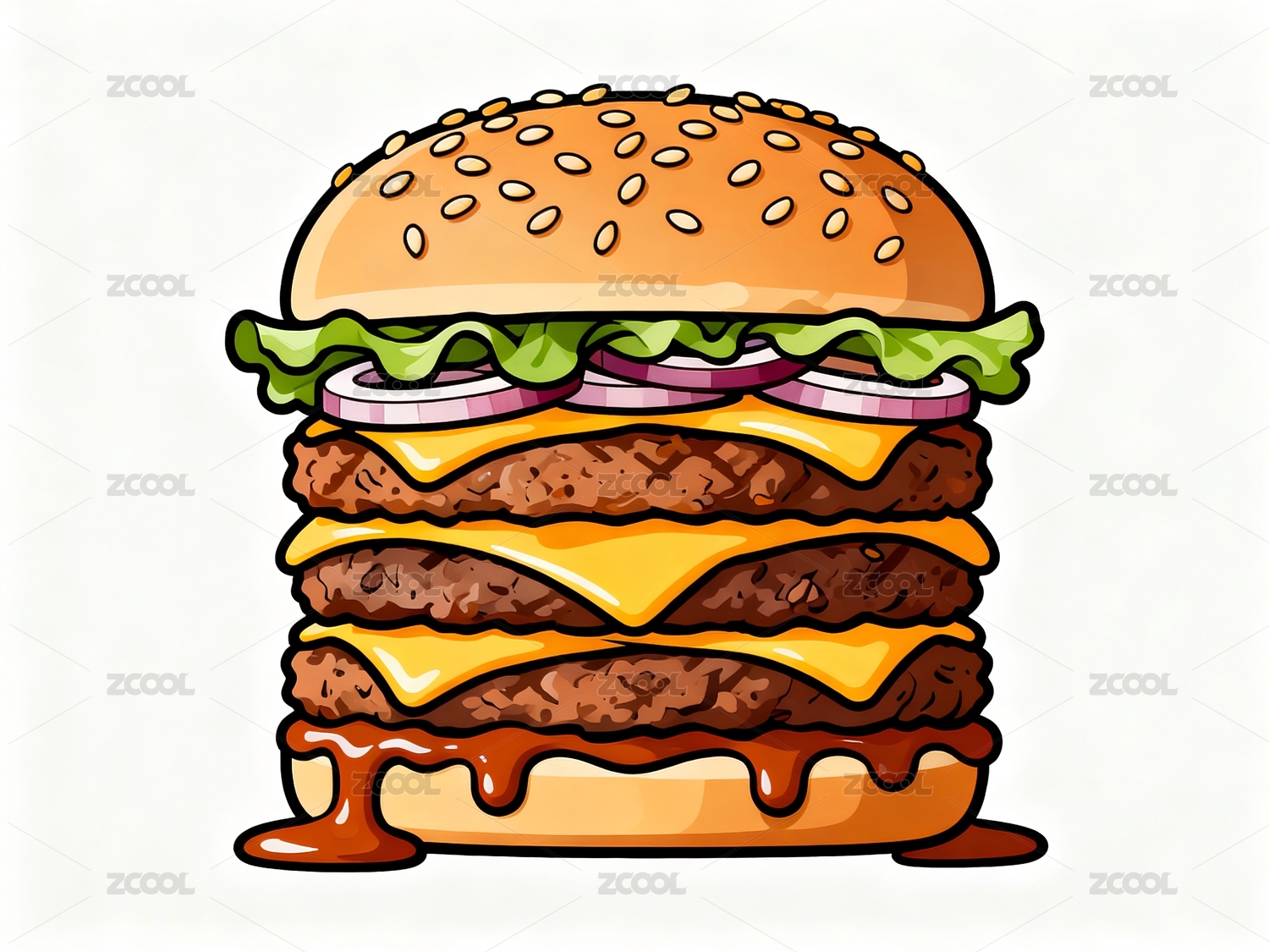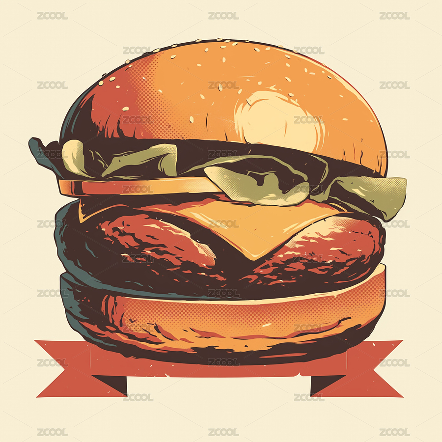 美式潮流汉堡插画图案印花装饰图样