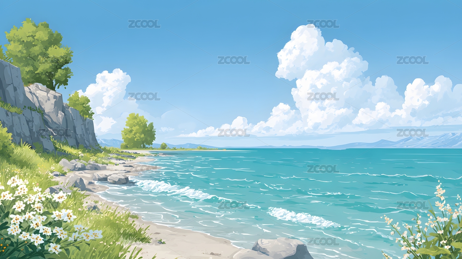 海湾自然风光插画