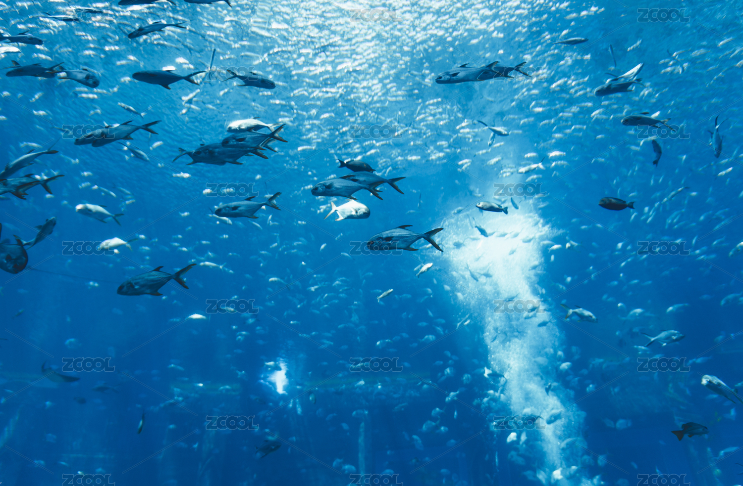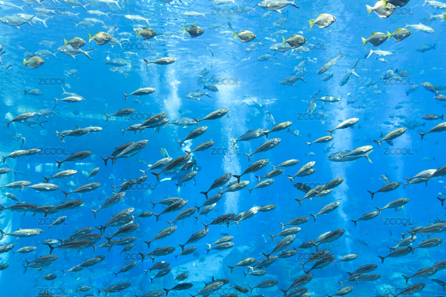 水族馆群游的鱼类