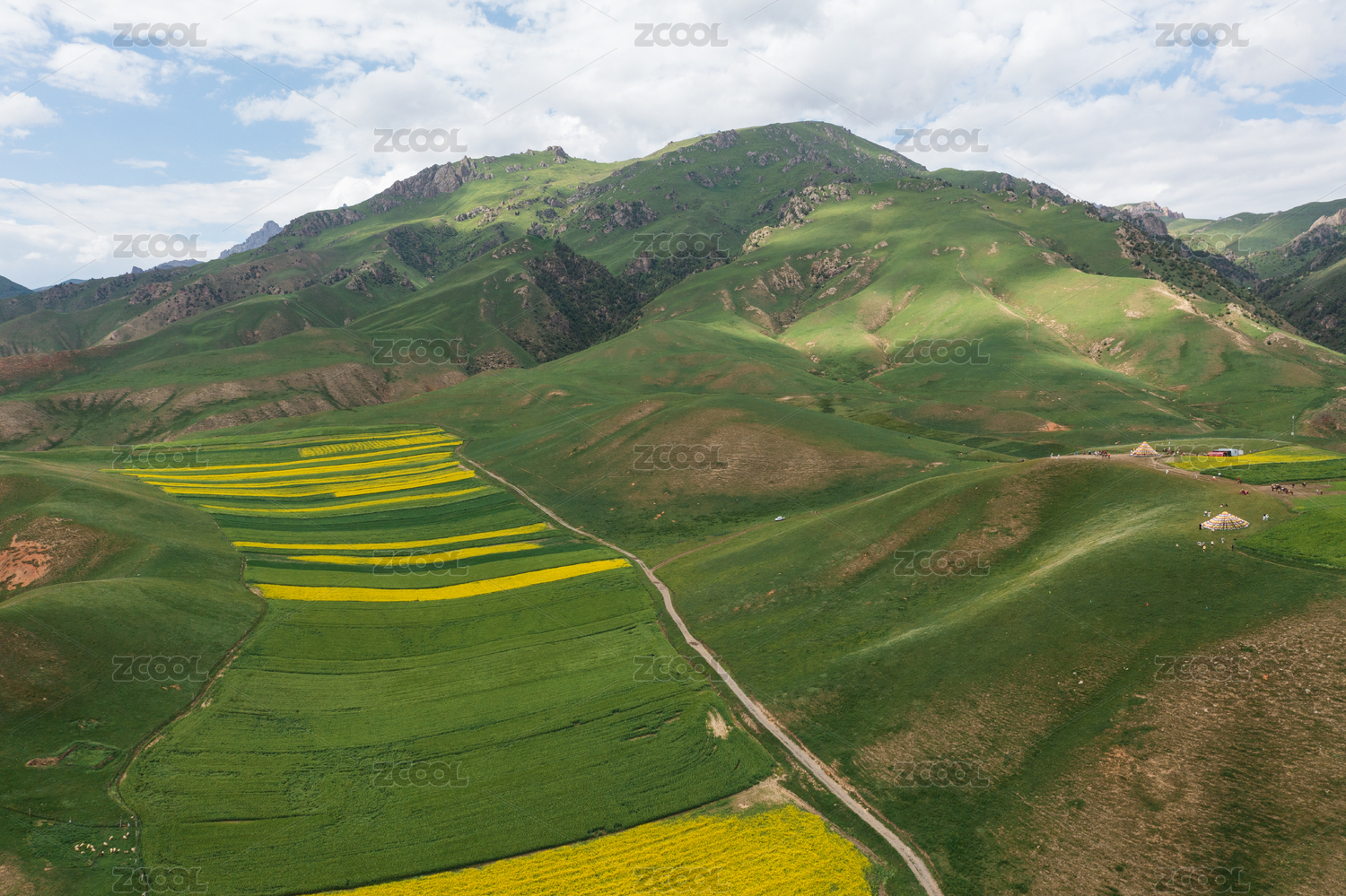 青海省祁连县卓尔山景区油菜花丹霞风光