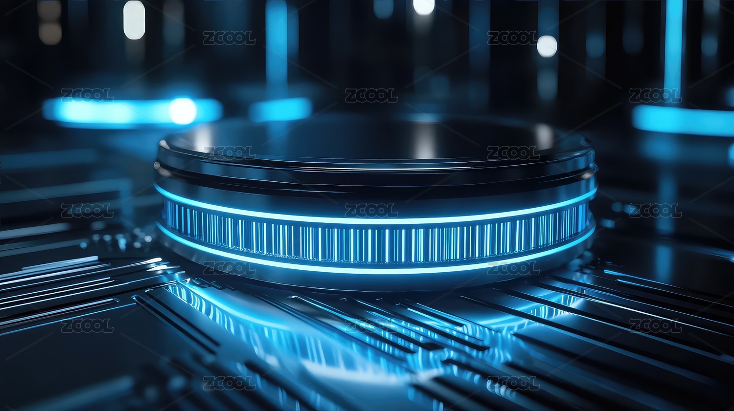 蓝色背景下桌子上的蓝色灯光特写镜头