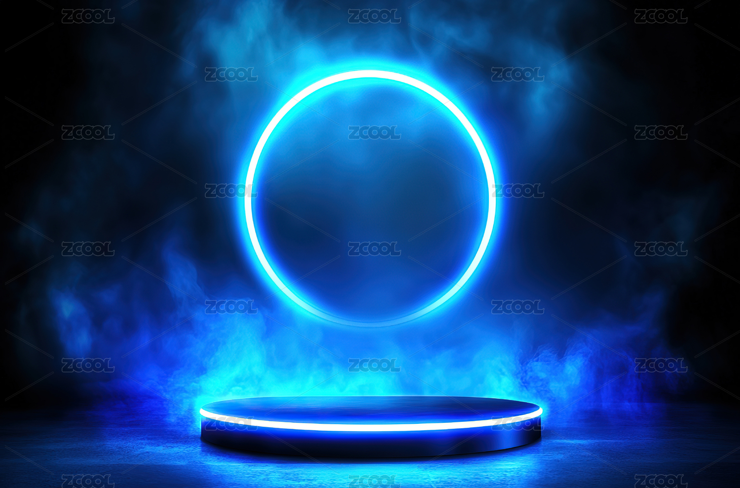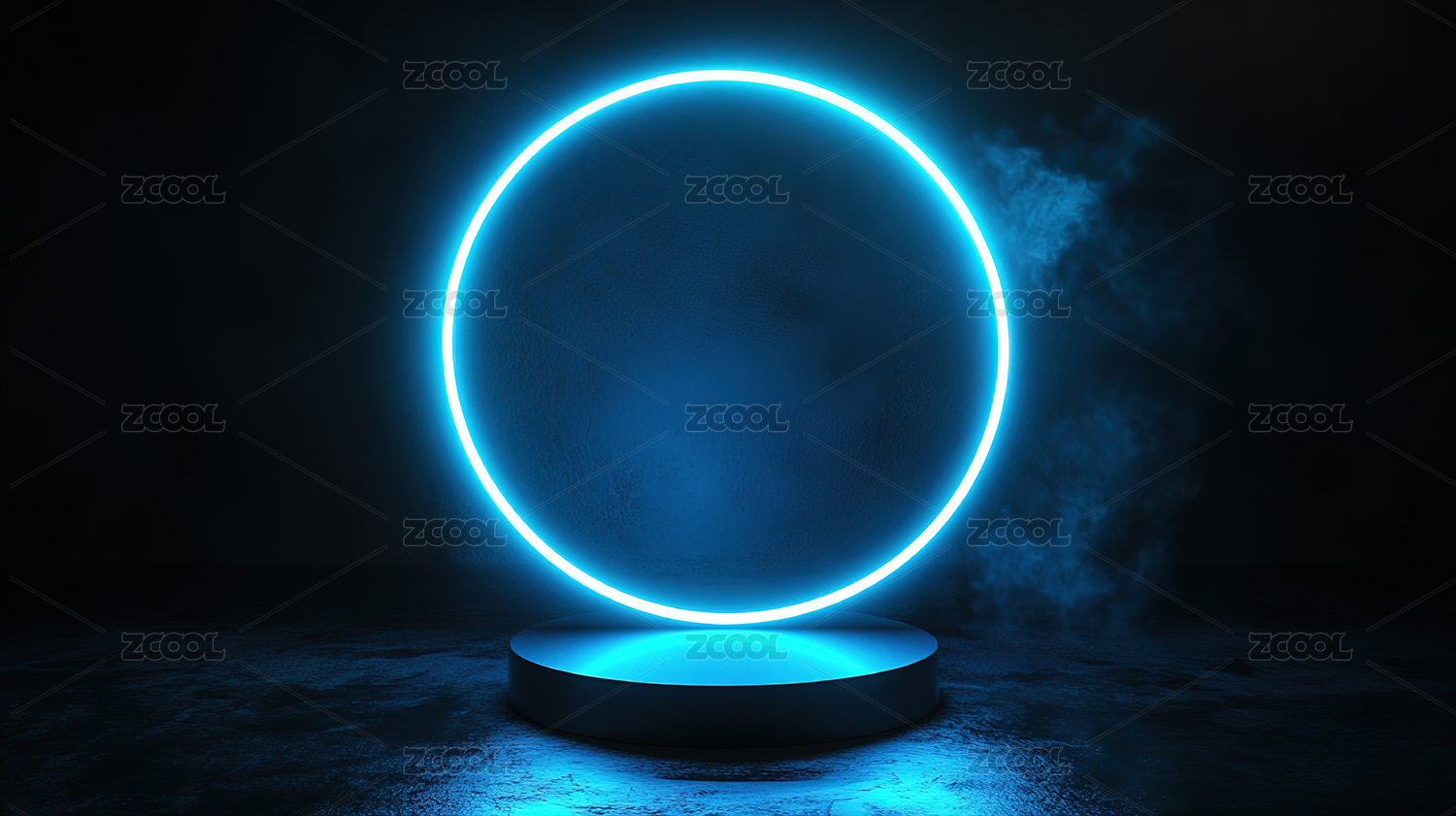蓝色发光圆环与烟雾场景