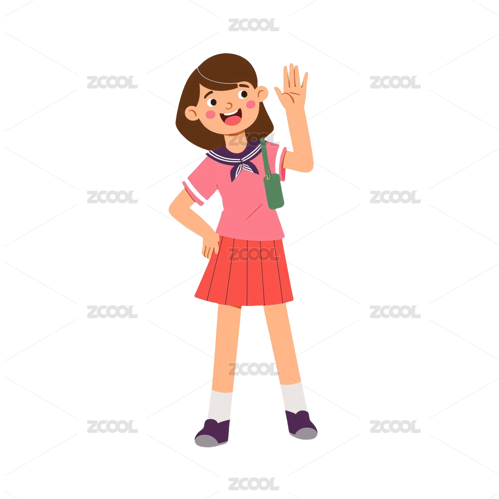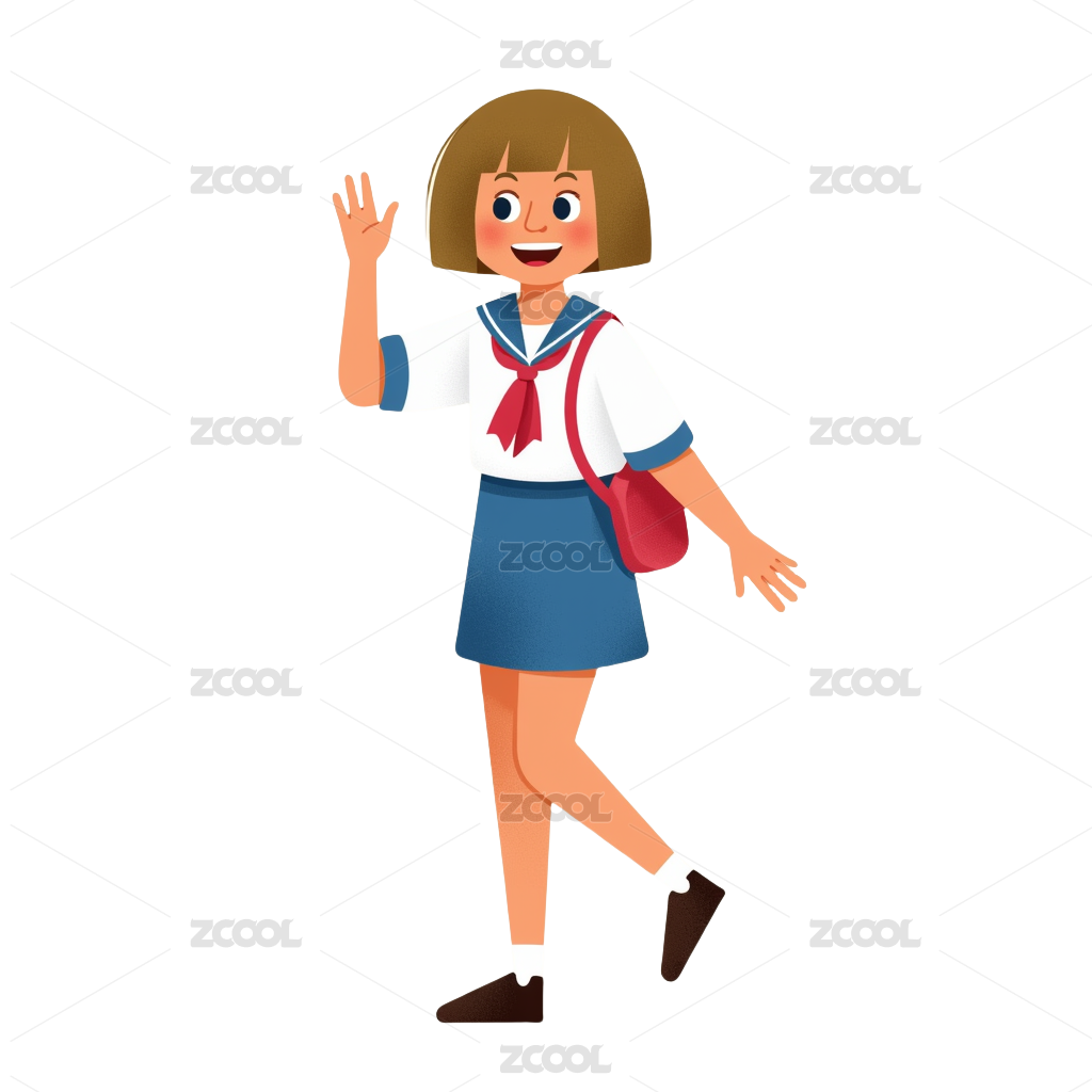 矢量插画人物穿学生装打招呼的女孩
