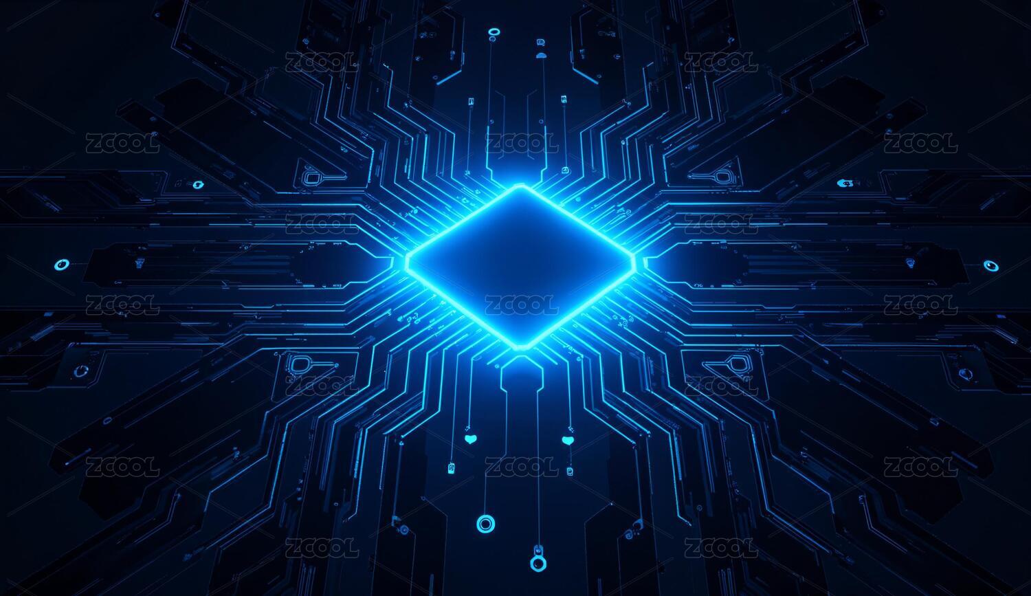 蓝色电路板核心发光图案