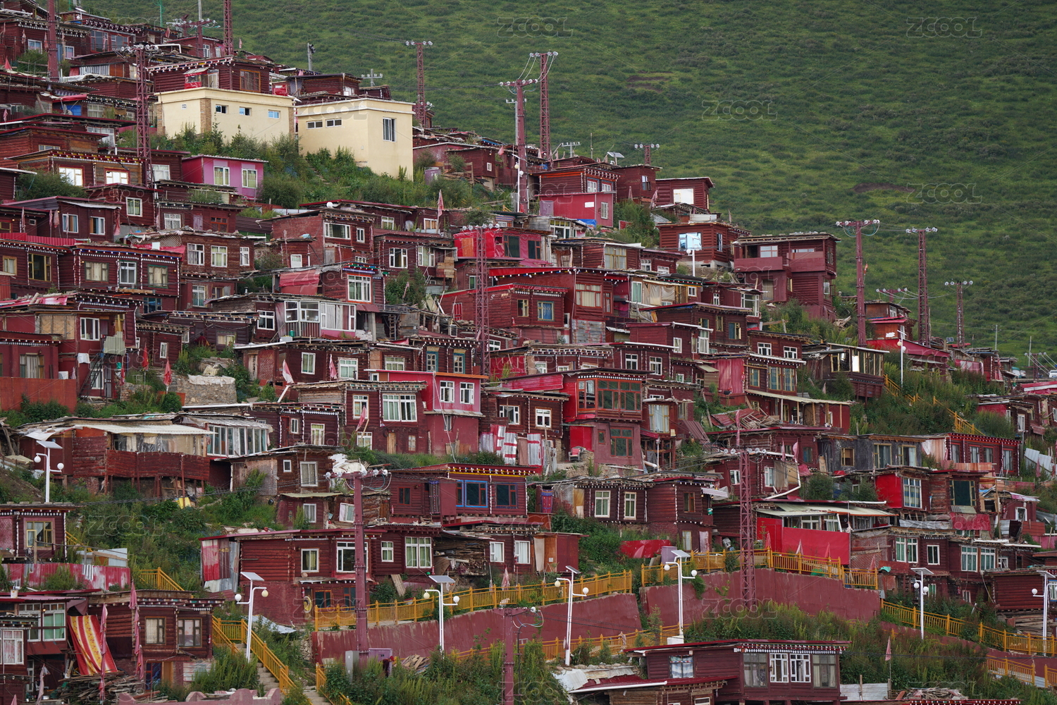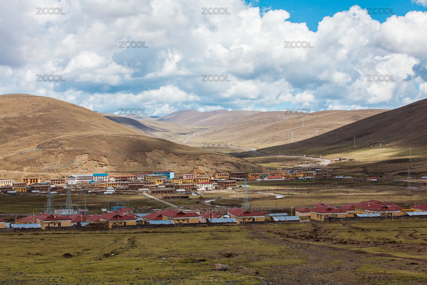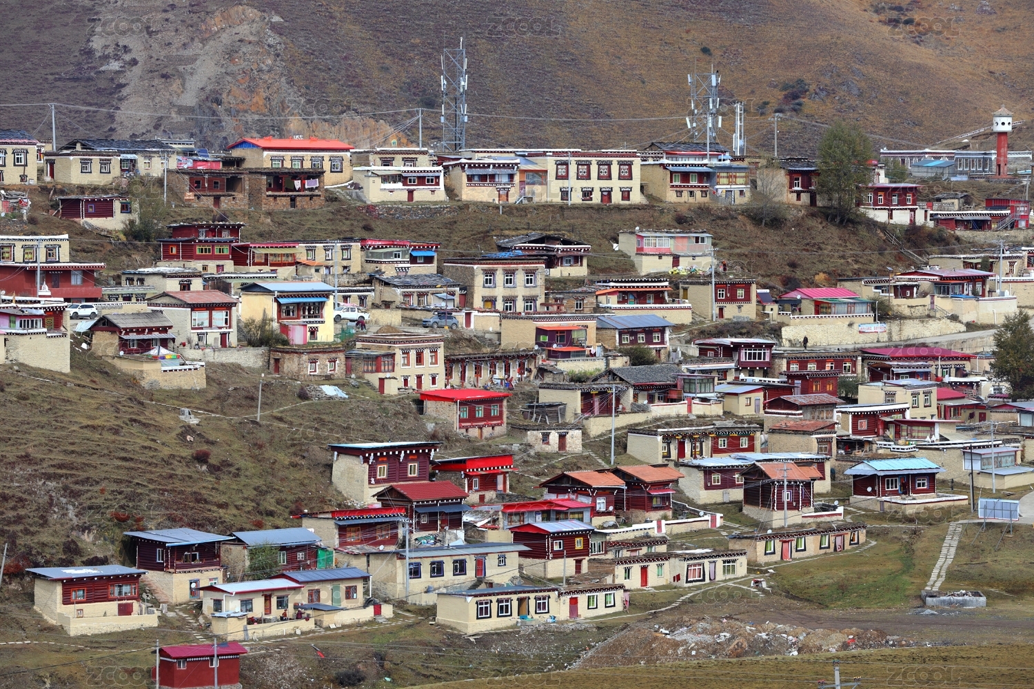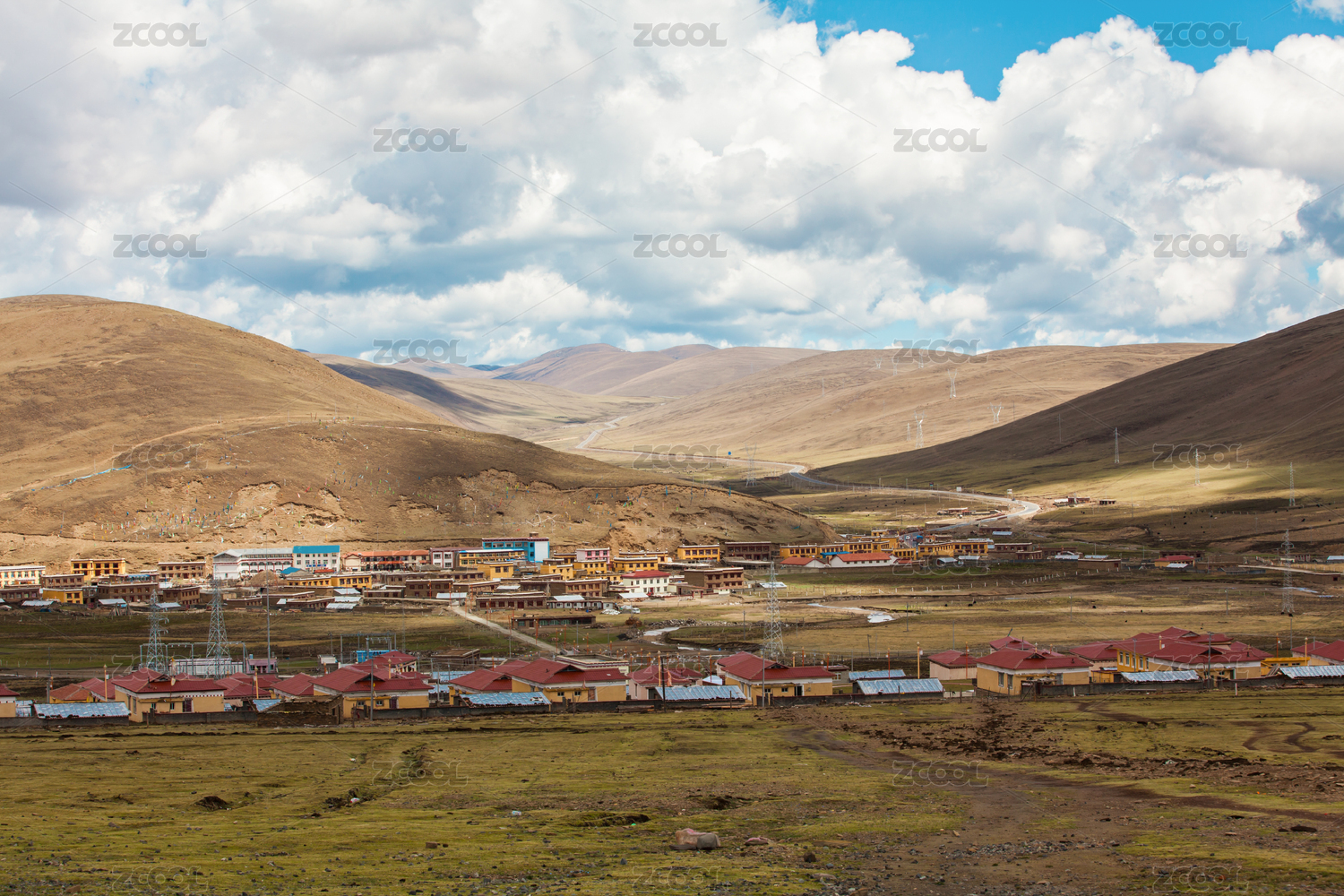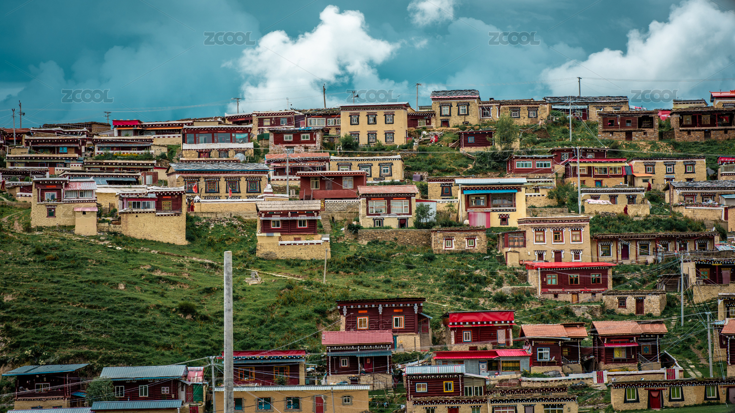 中国四川甘孜塔公木雅大寺外高山草原房屋