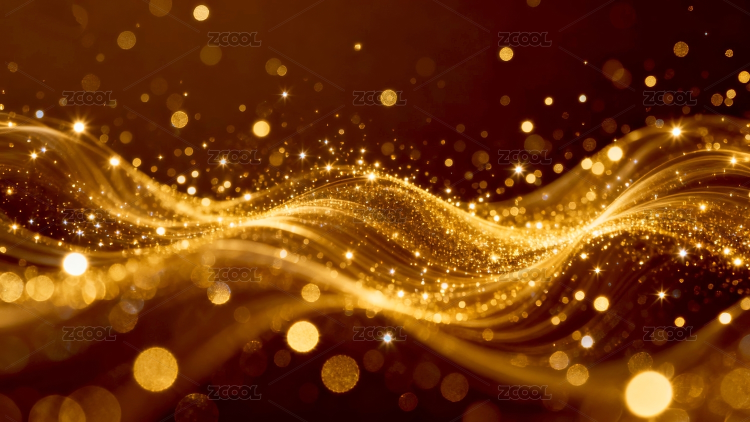 一堆金色的硬币和胶卷背景是模糊的金色光斑