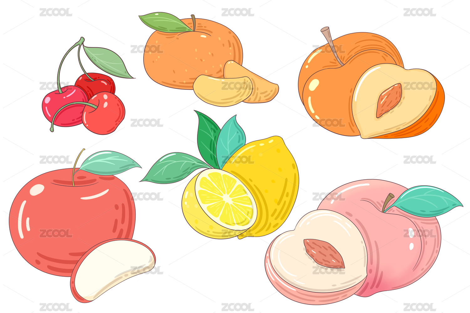 卡通水果橘子山竹蔓越莓蛋黄果素材