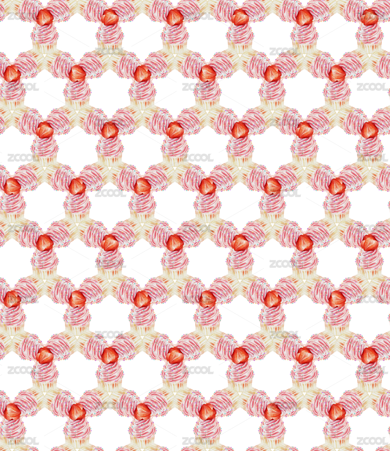 水彩草莓杯蛋糕甜品西点数码印花背景平铺图