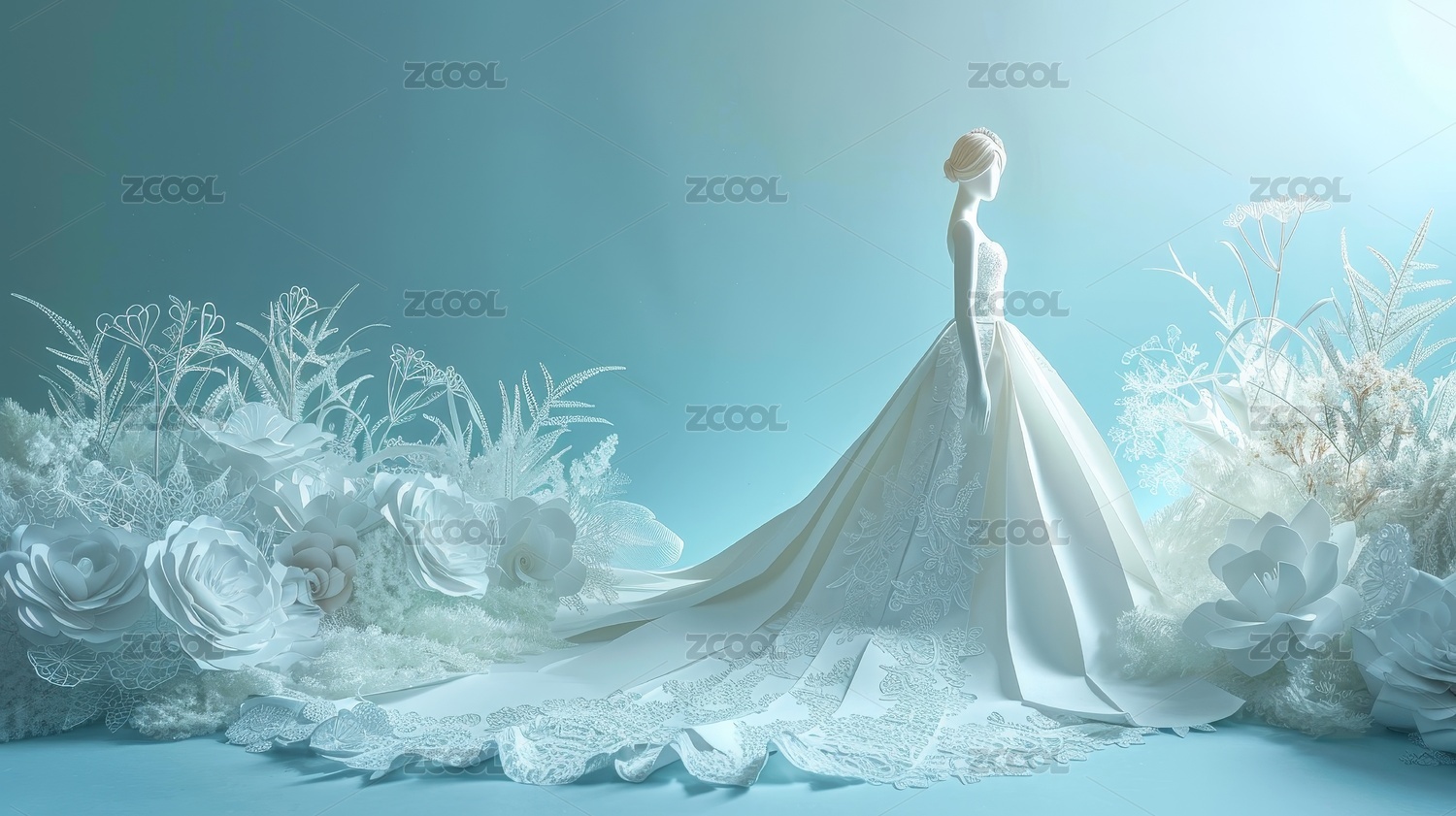 年轻,女孩,美女,长裙,婚纱,优雅,花朵,花瓣,米色,时尚