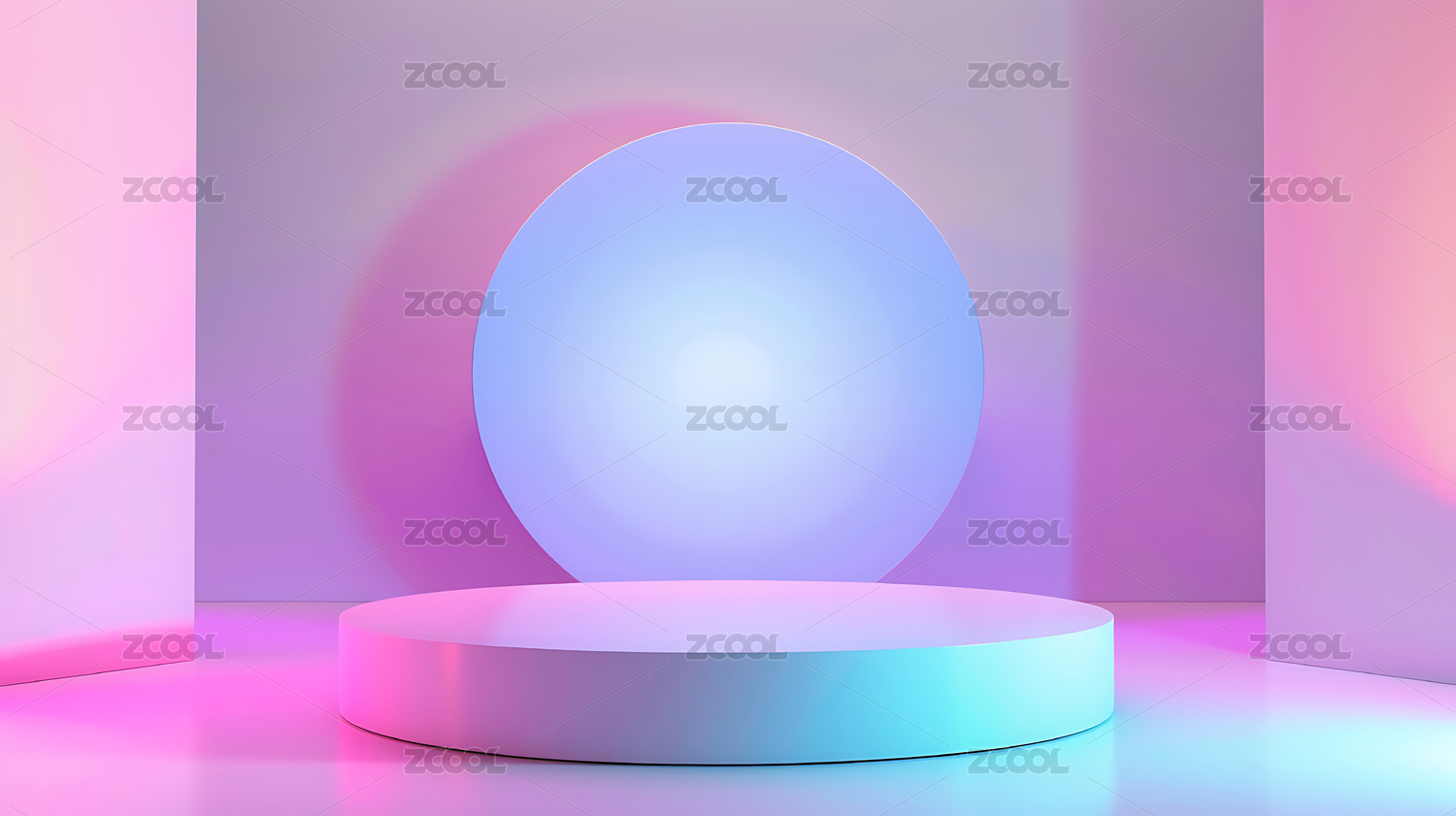蓝天,白云,展示台,立体,粉色,简约,圆形,3D,渲染,电商