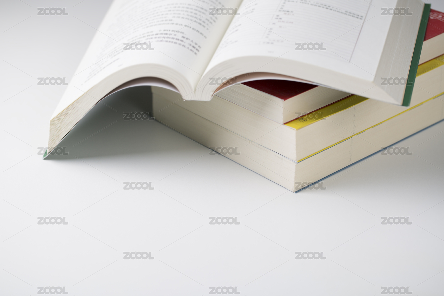 一摞翻开的书籍