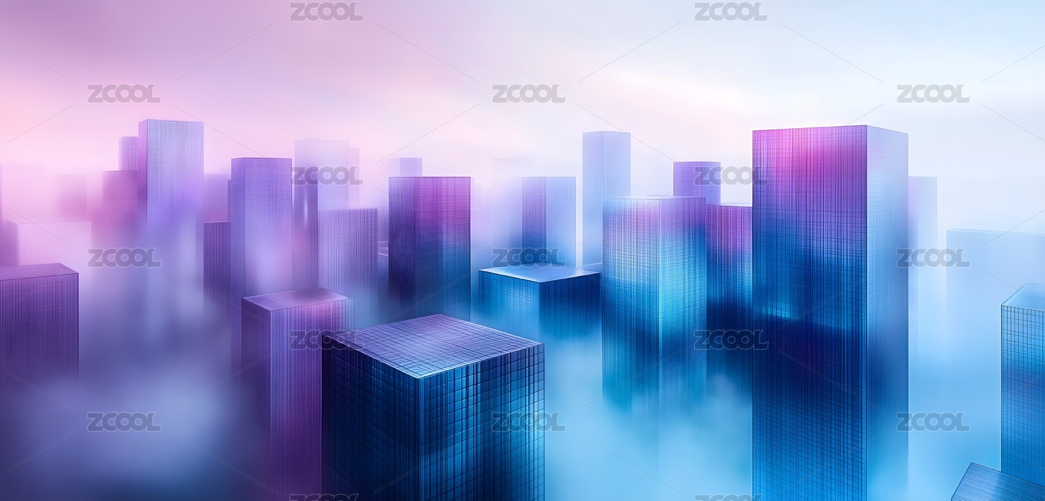 蓝色透明城市楼群
