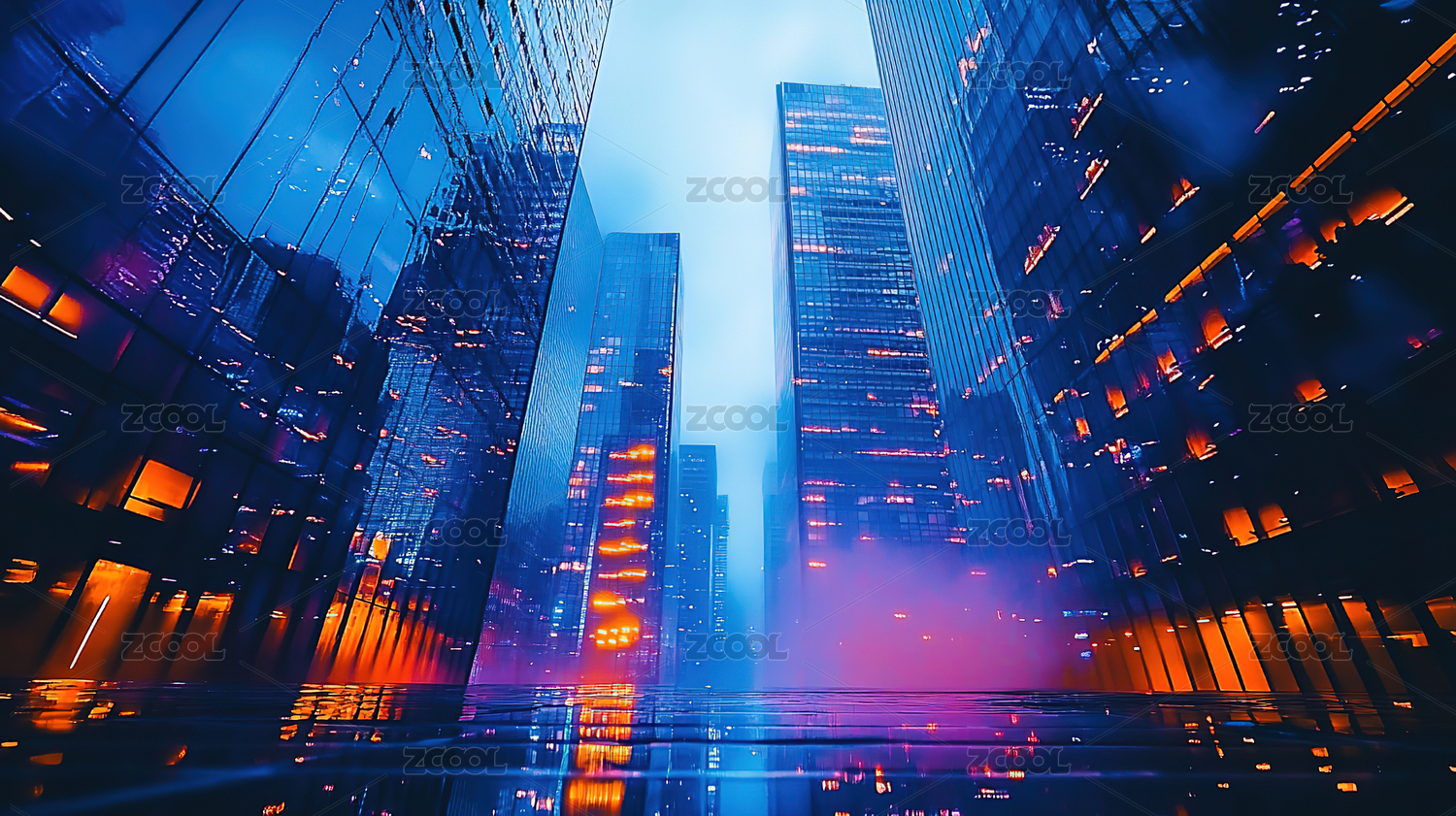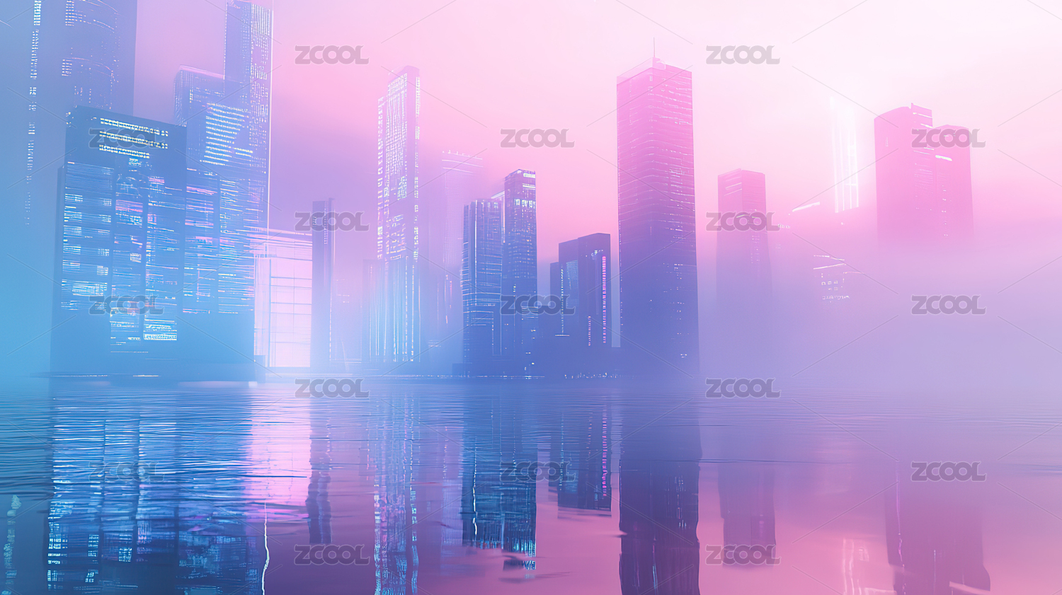 城市天际线的梦幻倒影