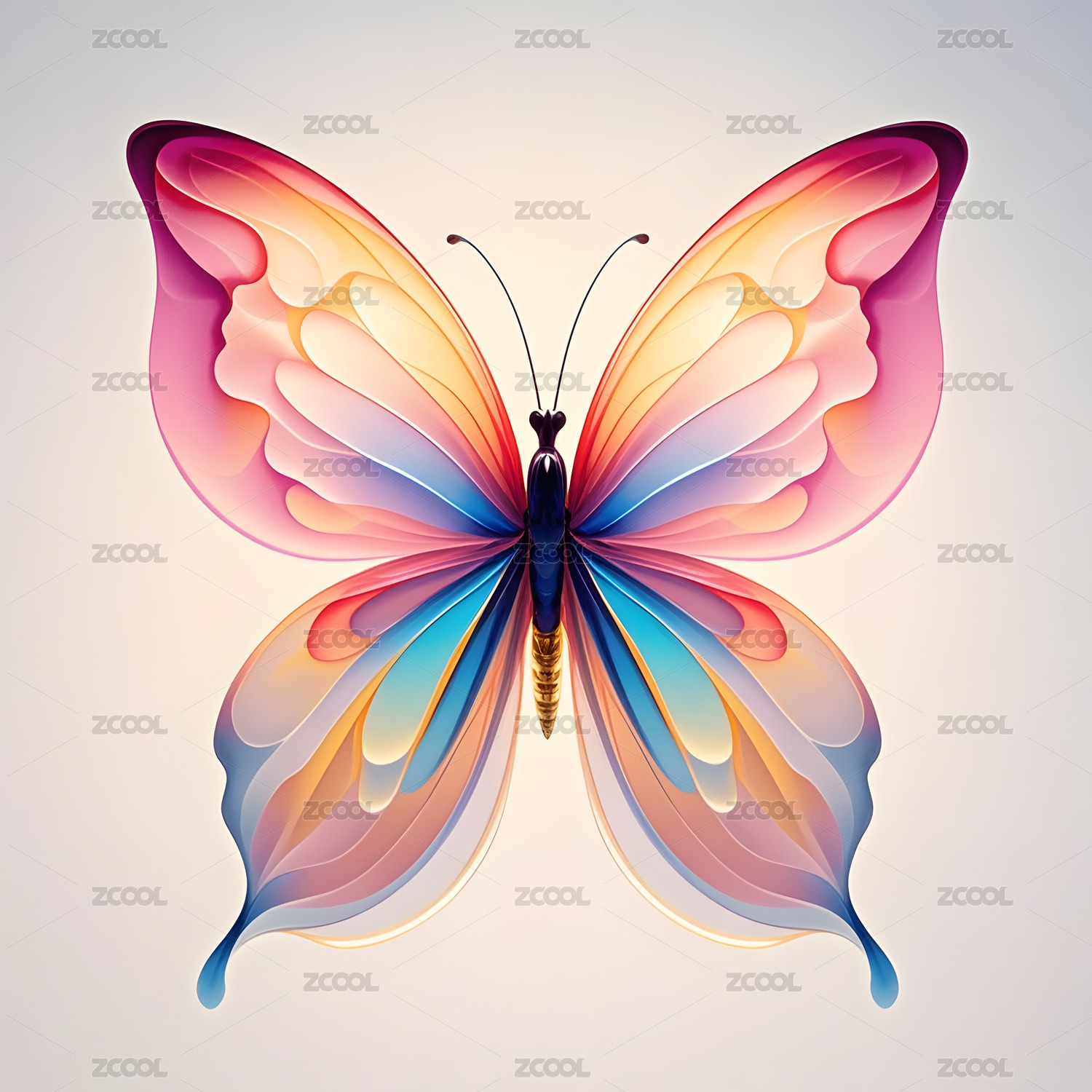 粉紫蝴蝶于浅色背景的柔美艺术画面