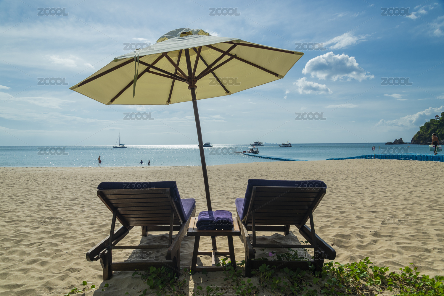 泰国甲米的兰塔岛的沙滩草棚躺椅