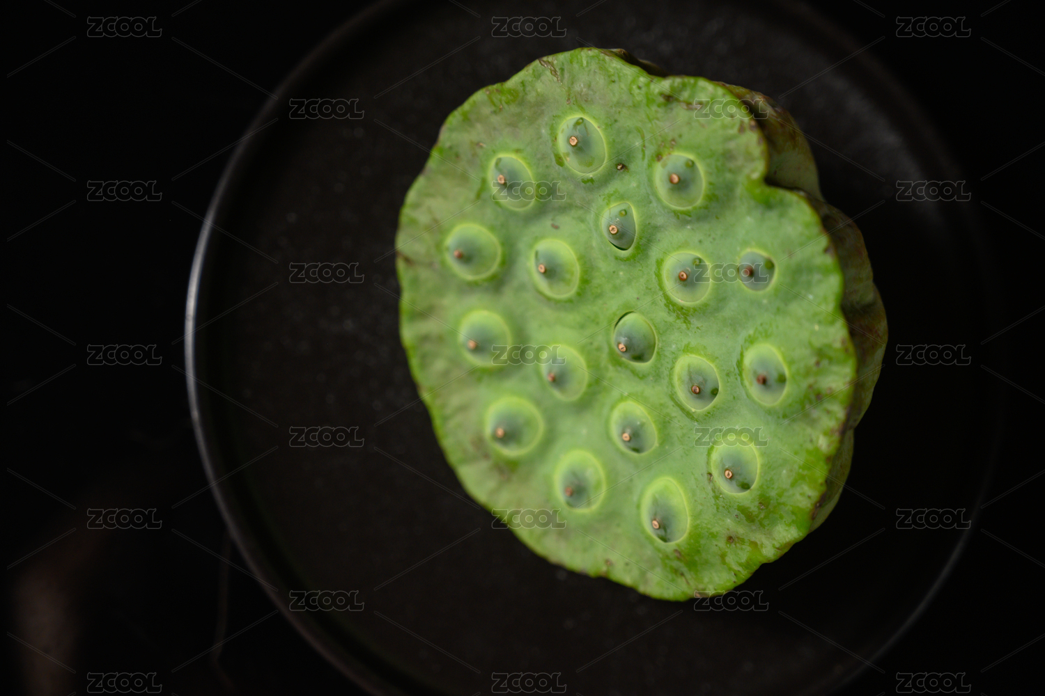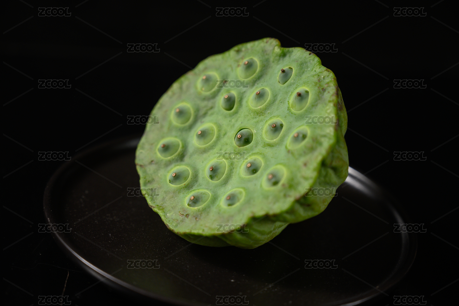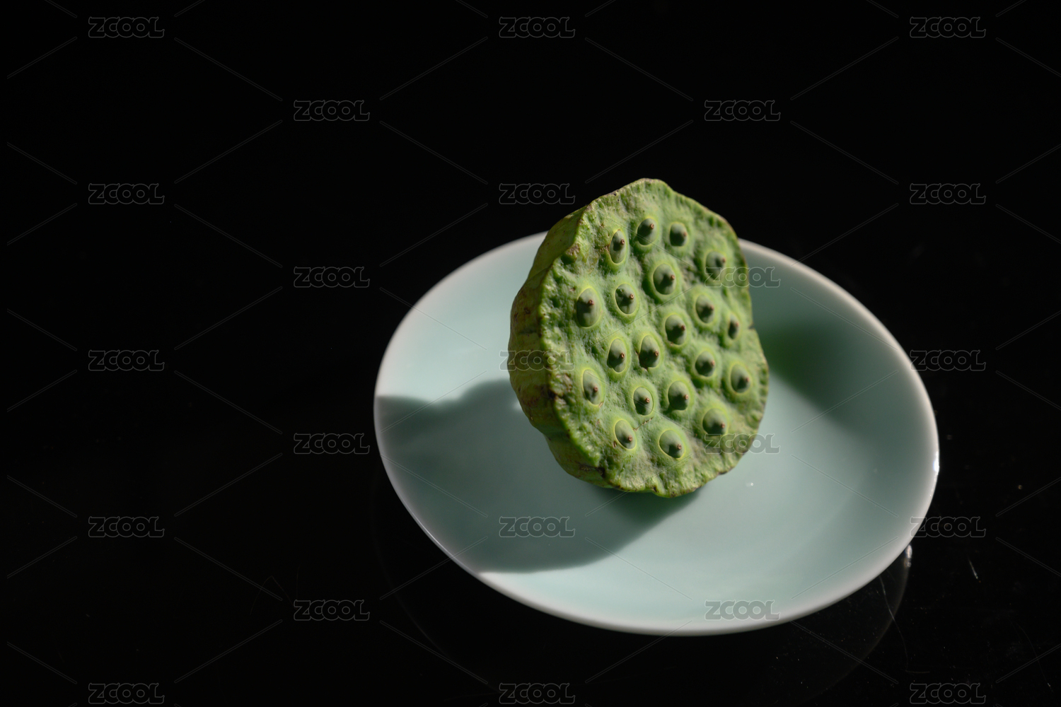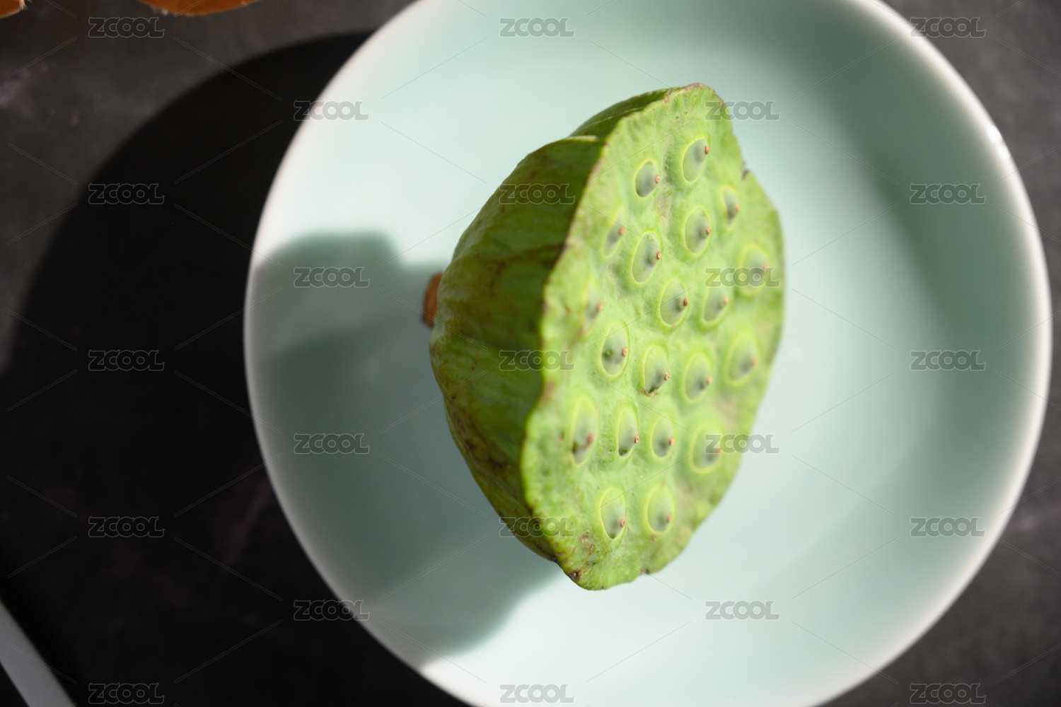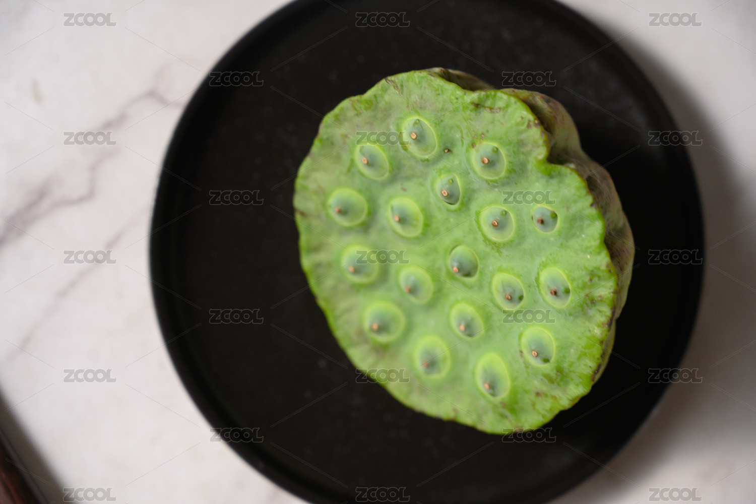 桌面上的盘子里的美味可口的新鲜莲蓬