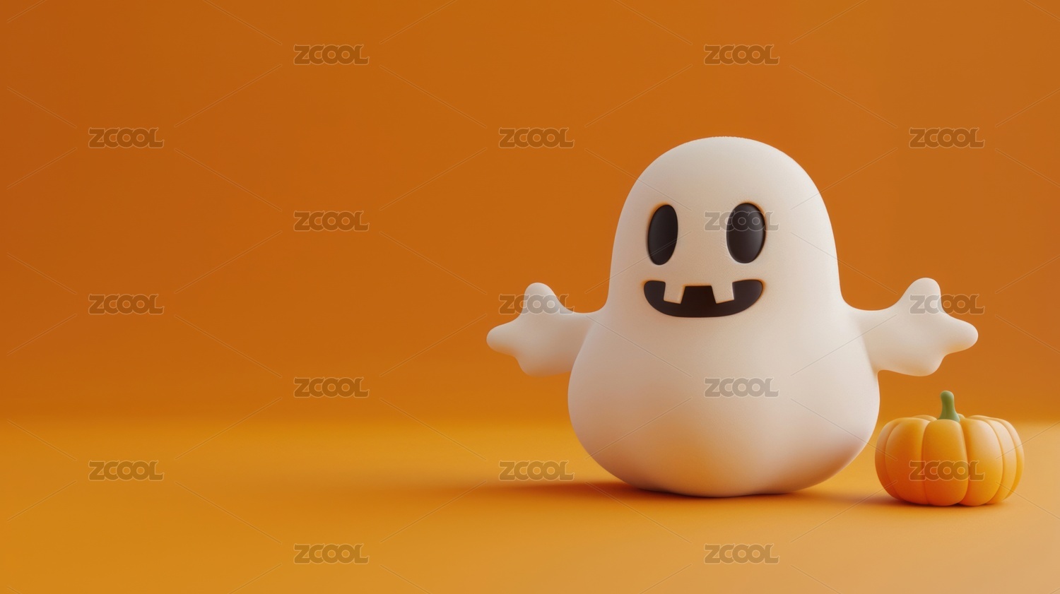 3D庆祝万圣节白色可爱幽灵和邪恶南瓜