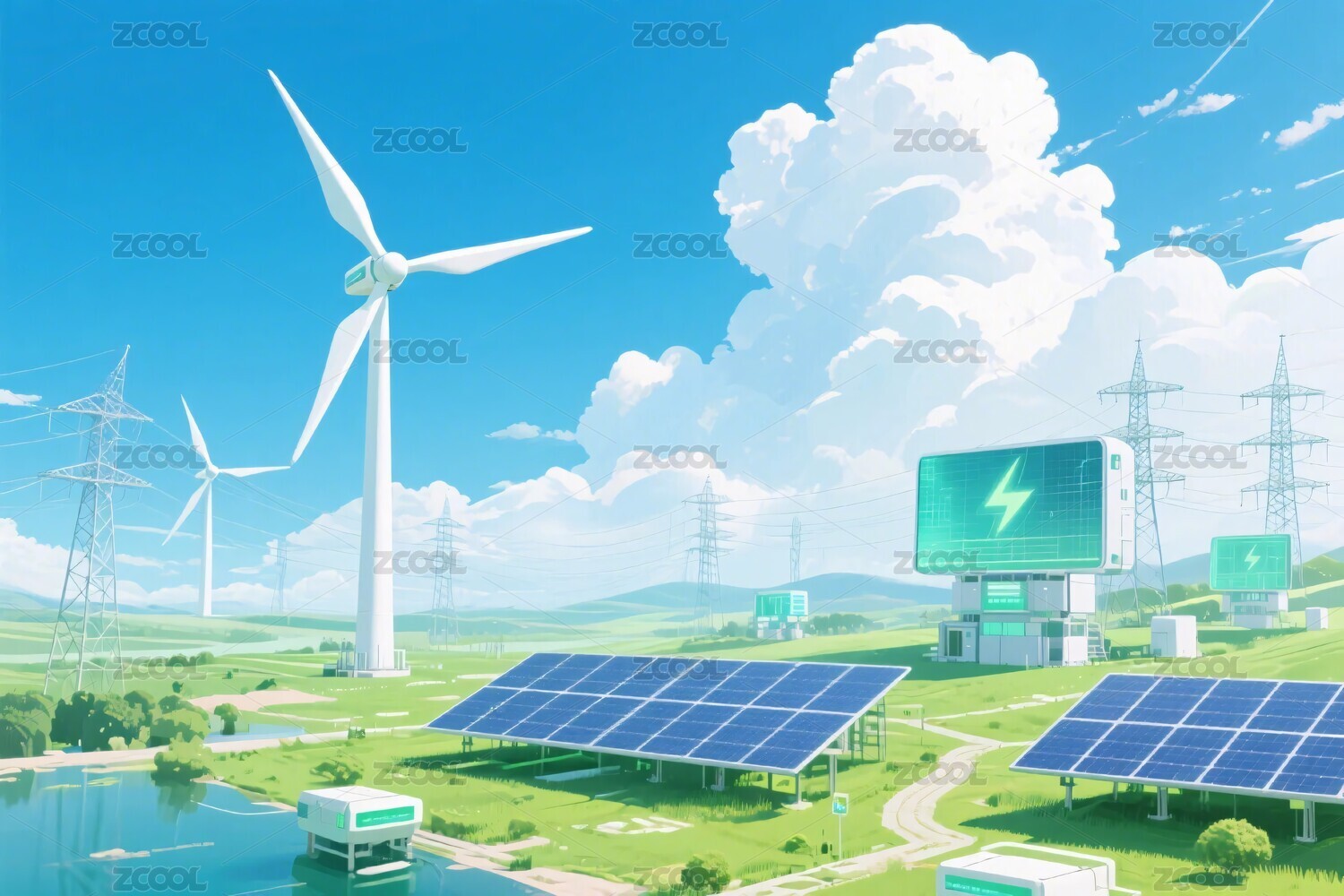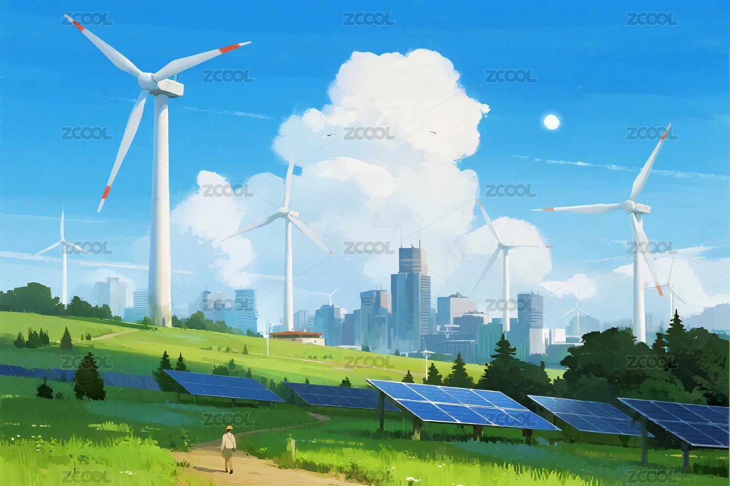 风力发电,风车,光伏发电,发电站,戈壁,沙漠,插画,新能源,风光,太阳能