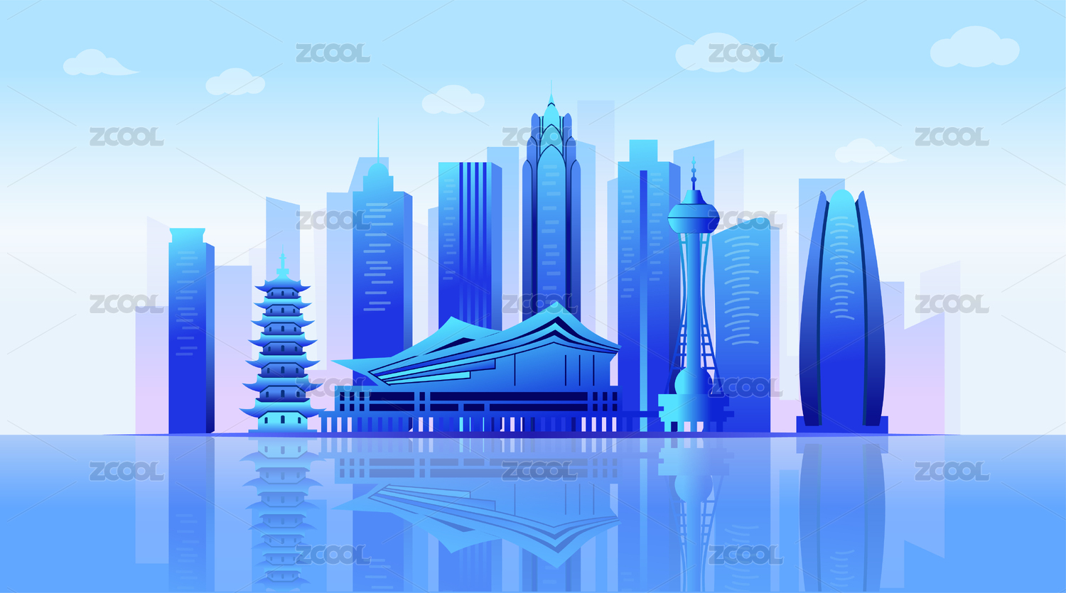 山东省潍坊市城市矢量插画网页版蓝色