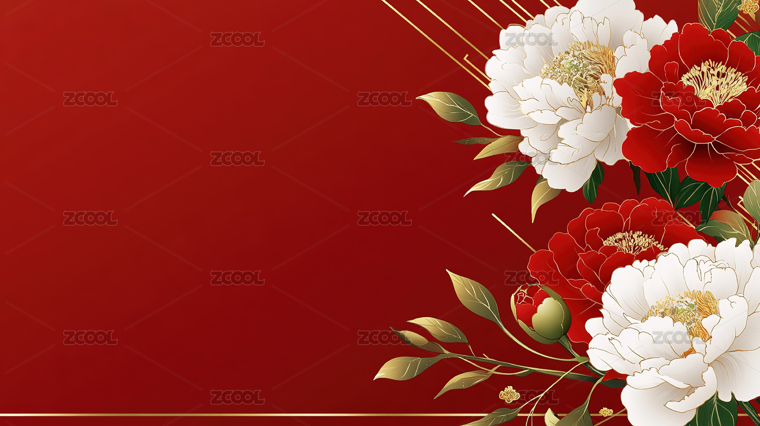 带有优雅中国传统牡丹花的红色新年喜庆背景