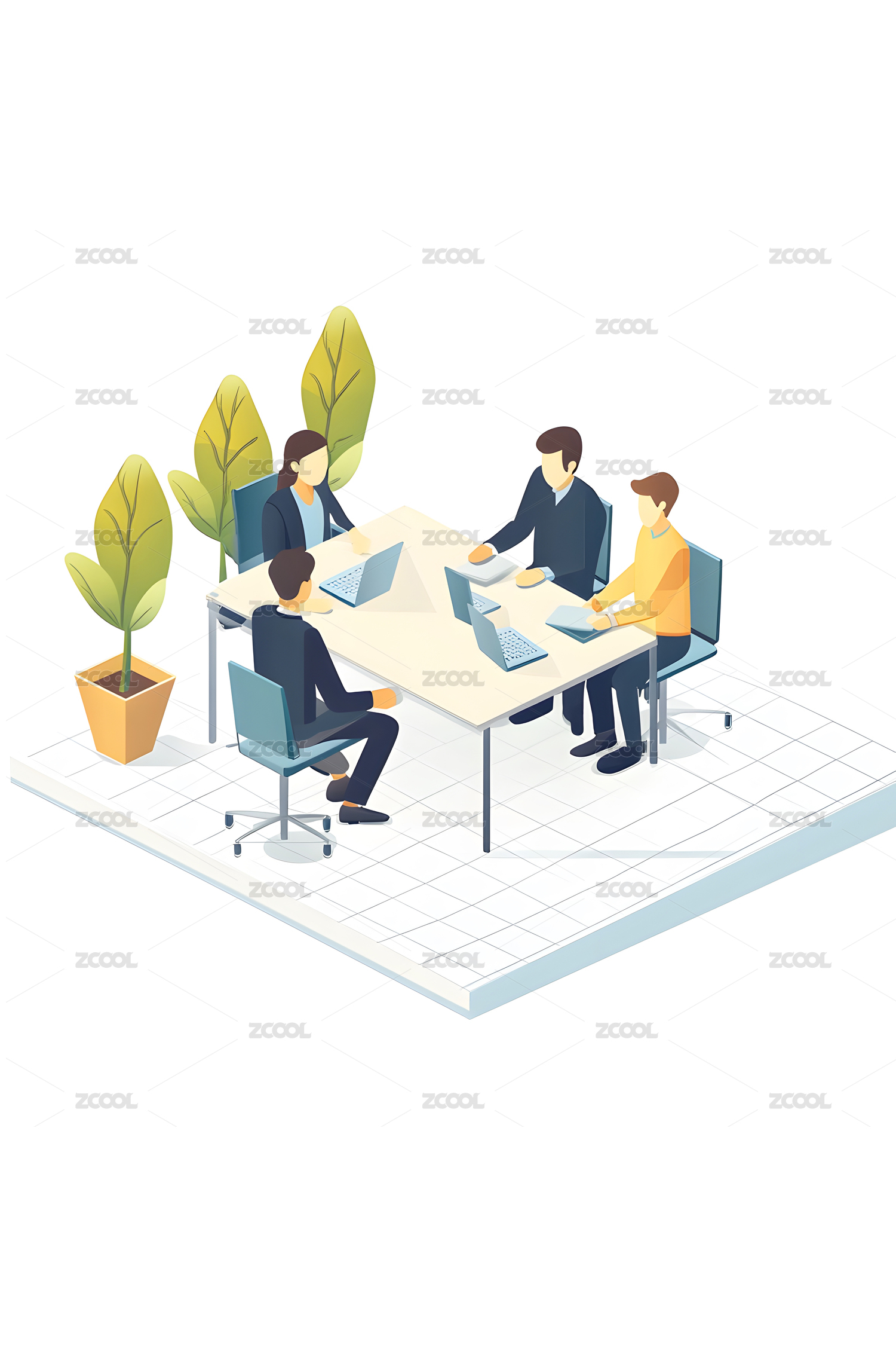 办公室讨论工作插画