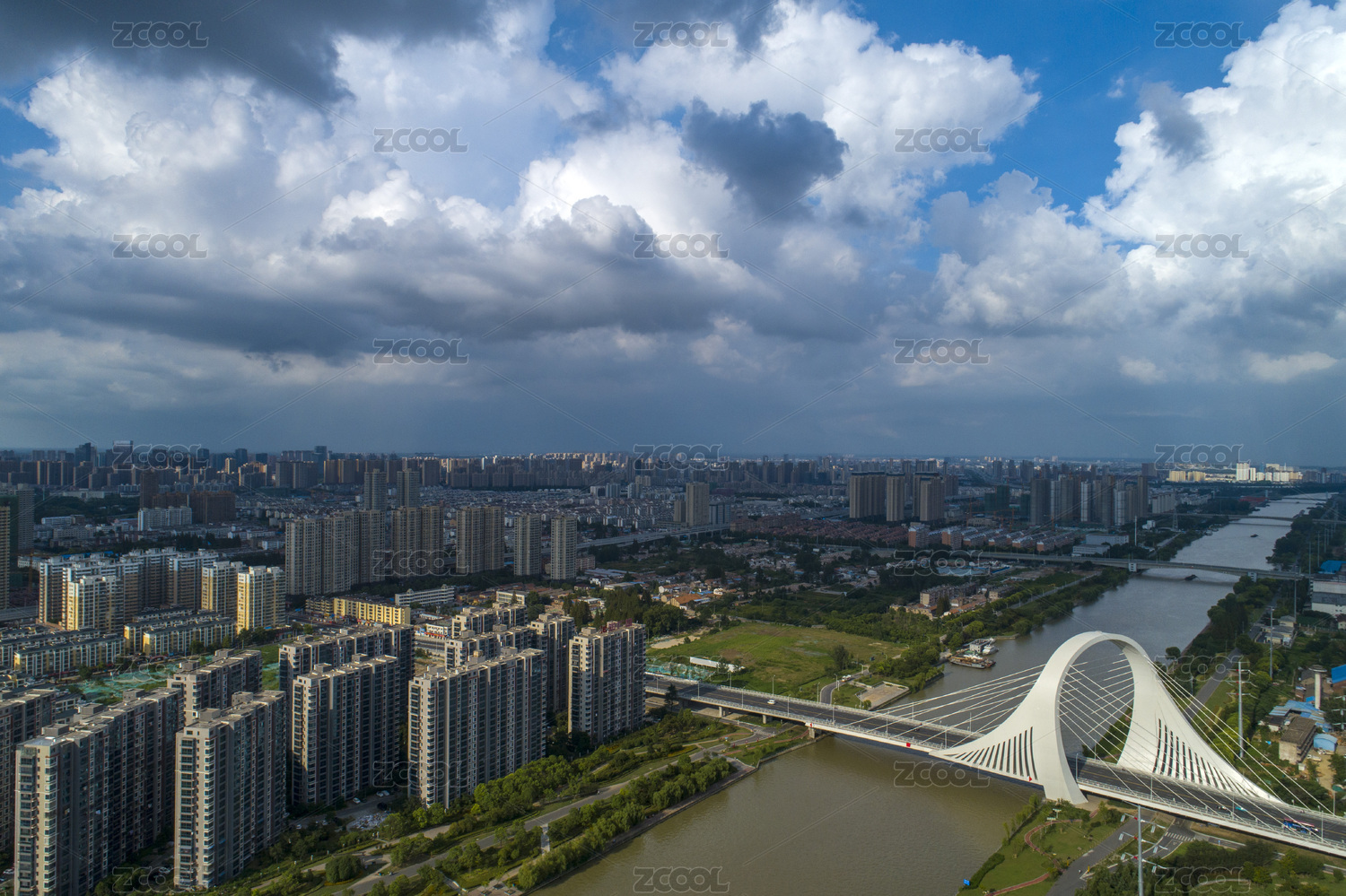江苏注安蓝天白云下的运河城市