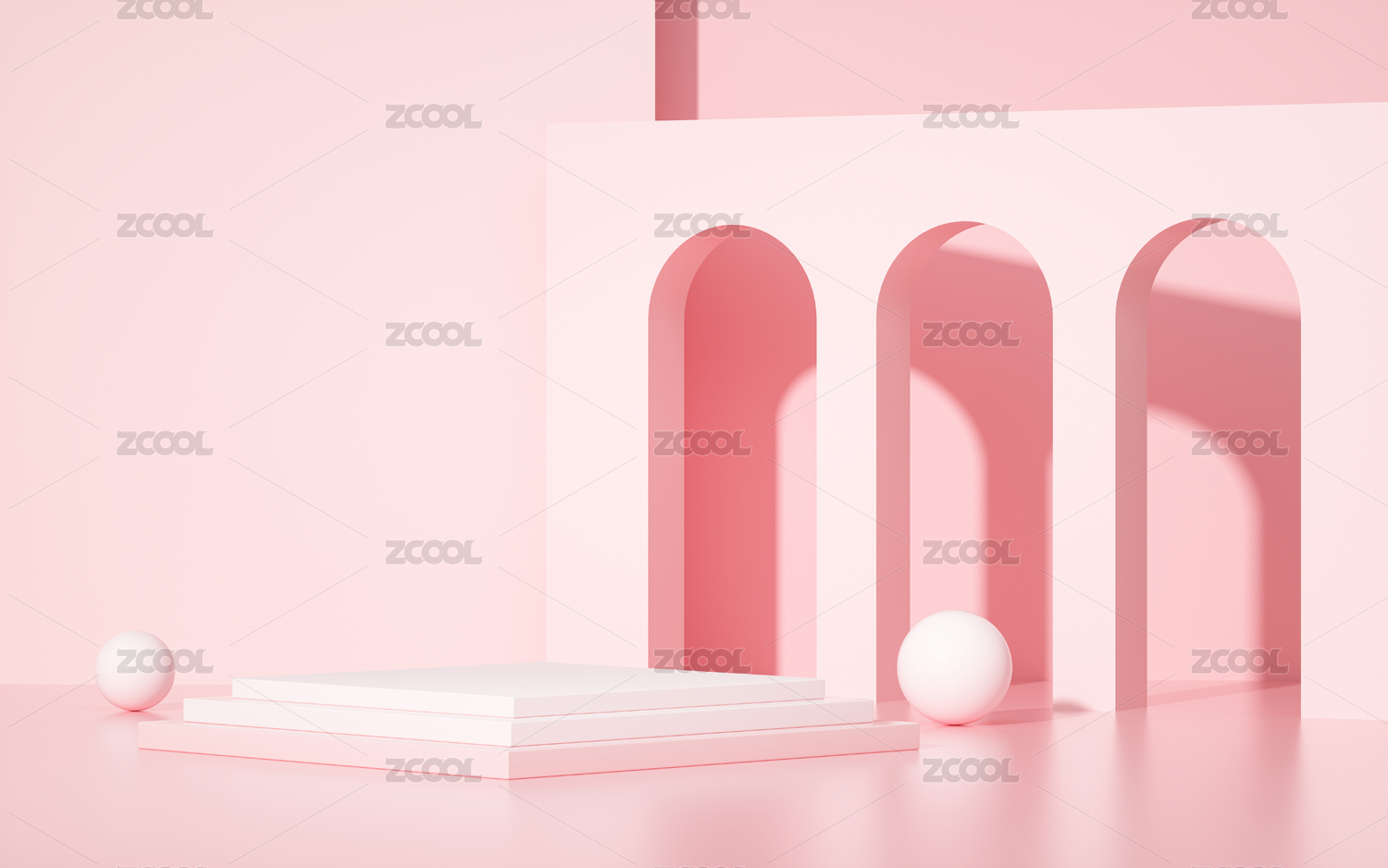 三维渲染拱门立体几何背景展台展示