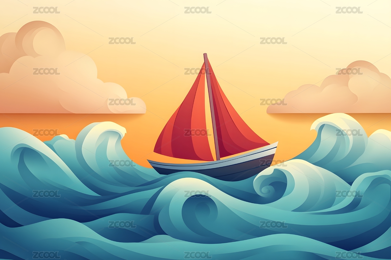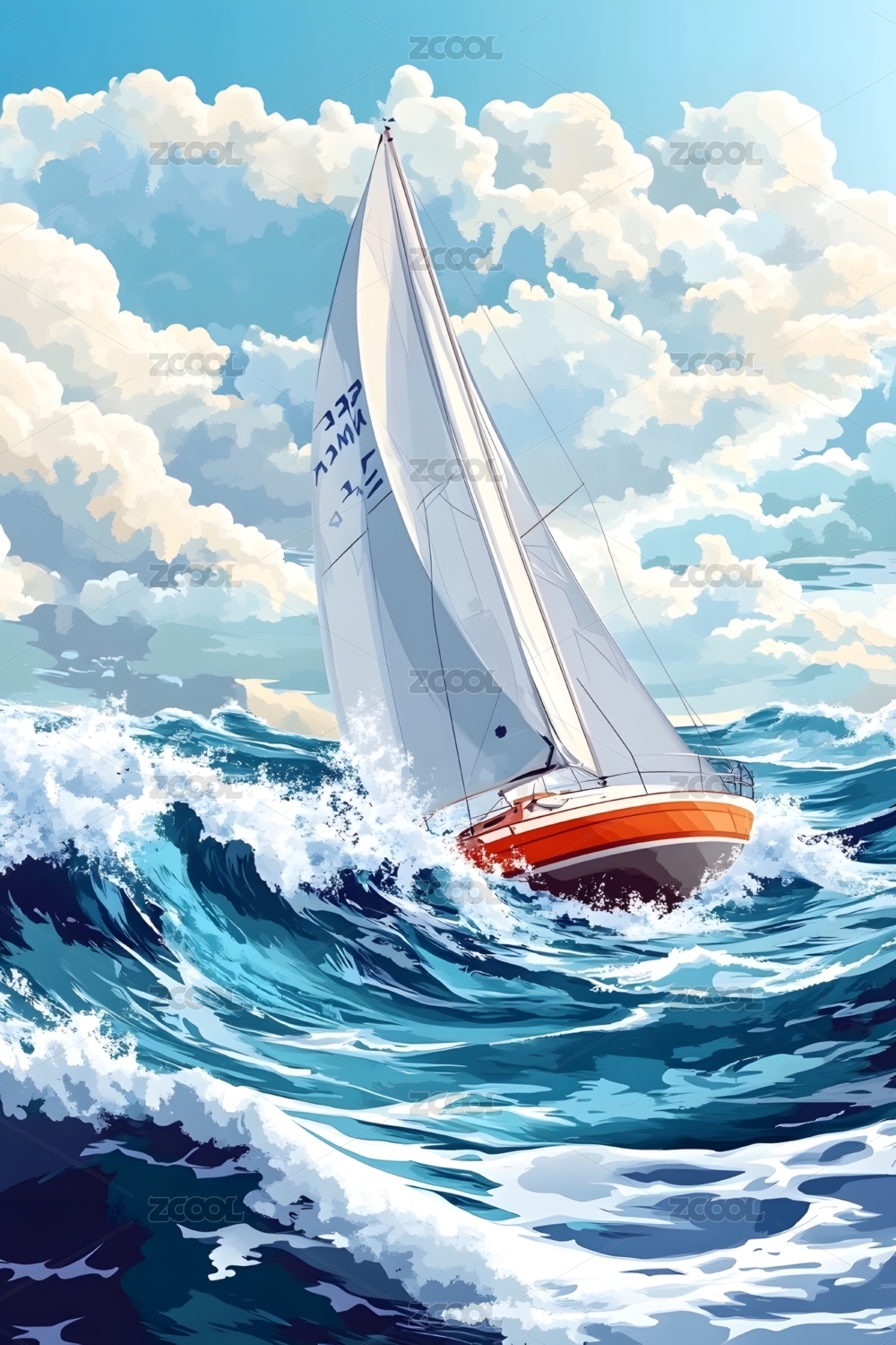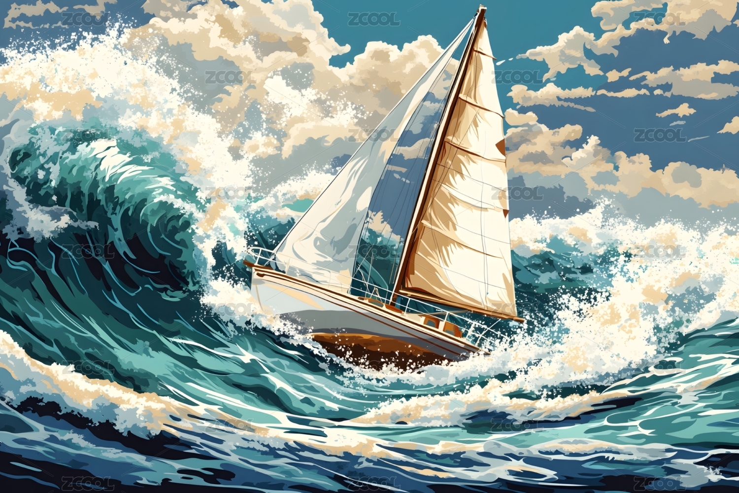 运输,巨浪,小船,航行,船帆,帆布,船身,海浪,船体,风浪