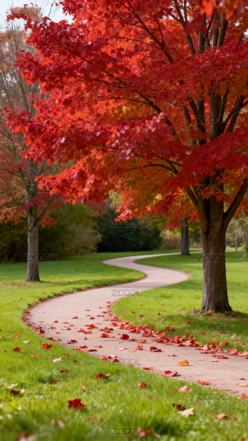 沈阳本溪老边沟 秋天多彩枫叶林间小路风光