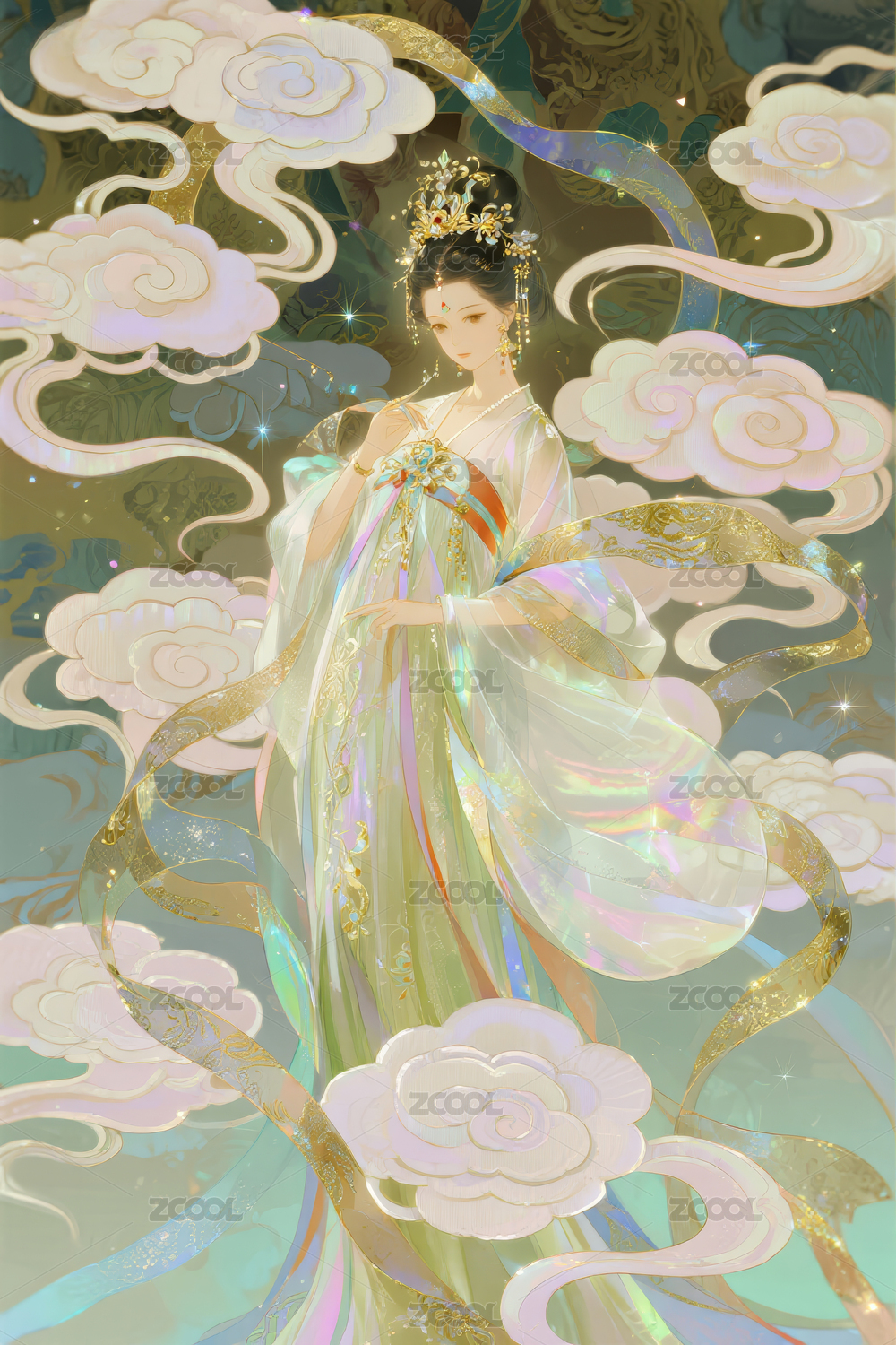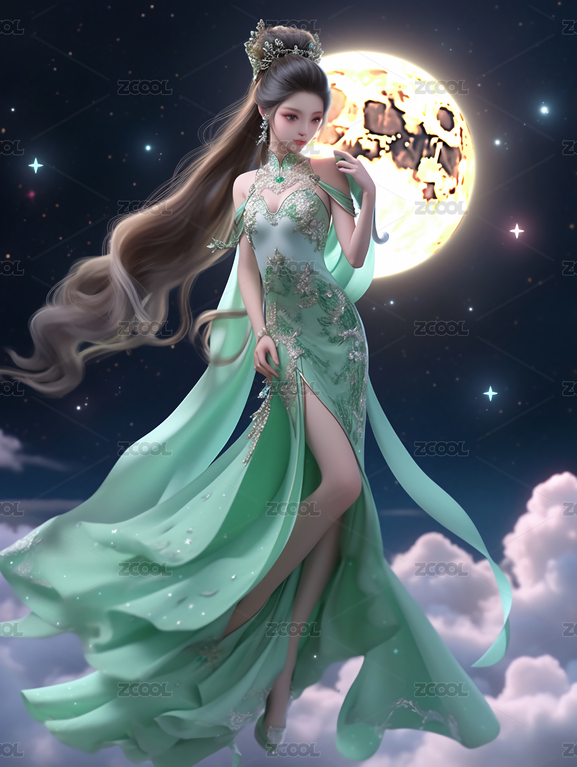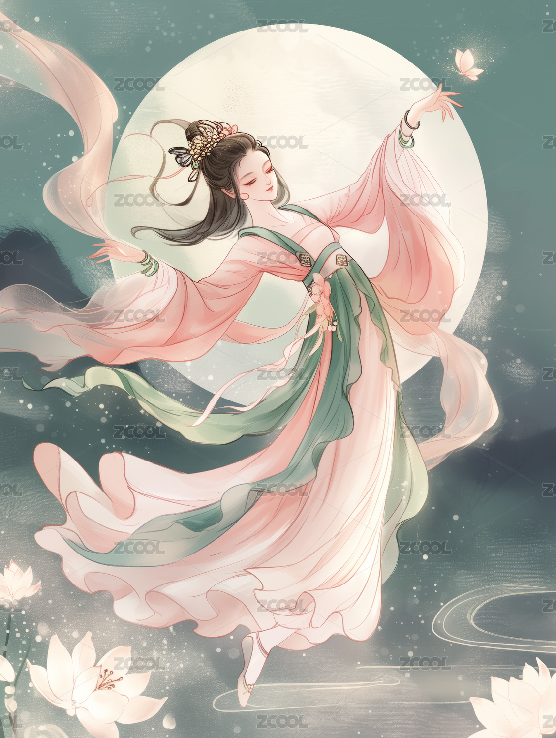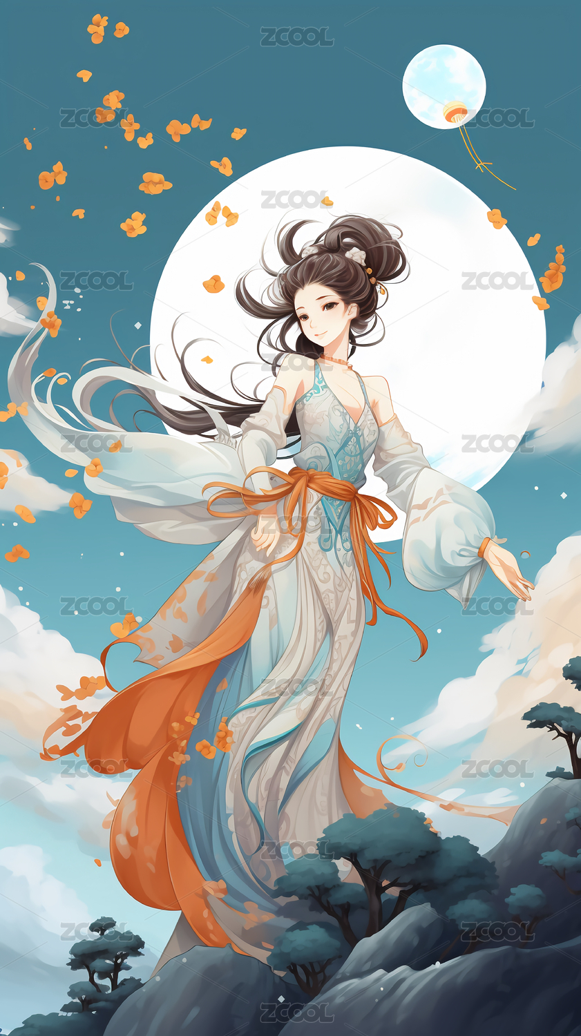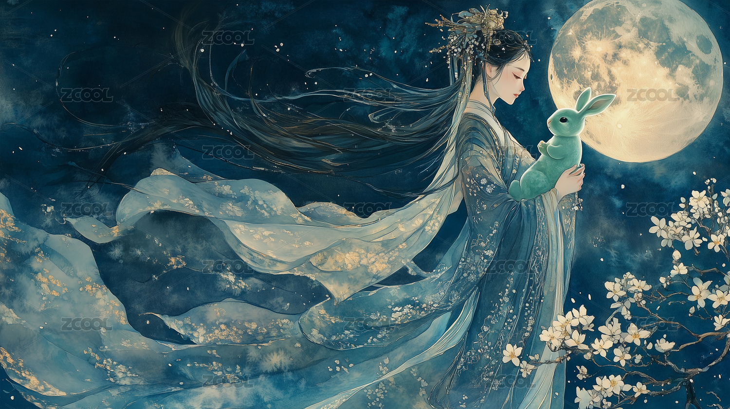 AIGC202403,佳节,立秋,秋天,节日,玉兔,嫦娥,月亮,仙女,神话