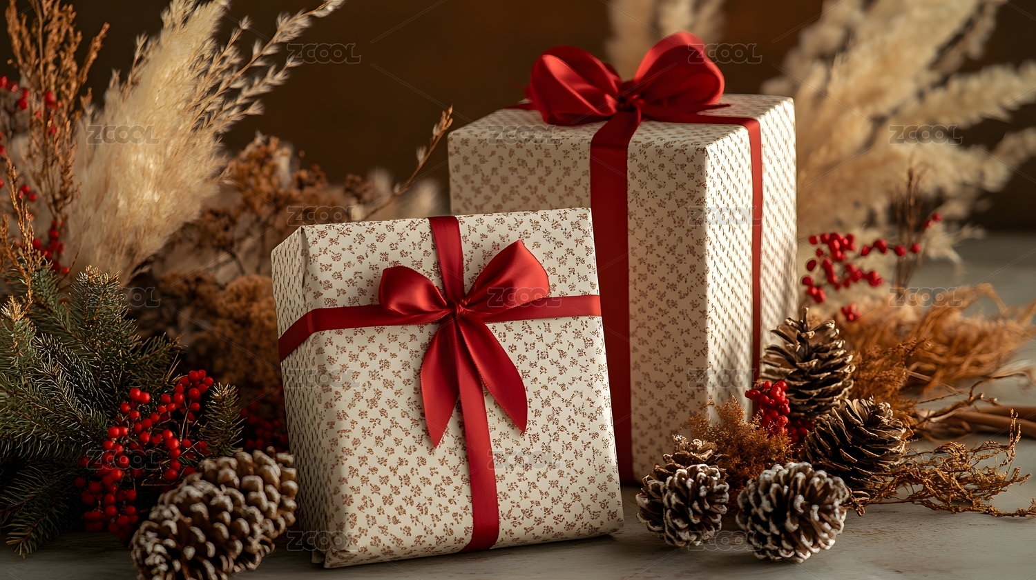 节日礼物盒与节日装饰
