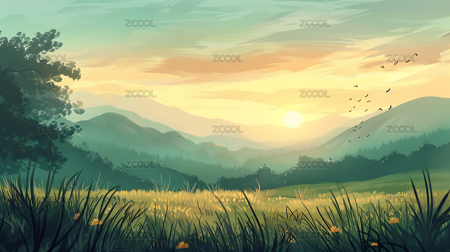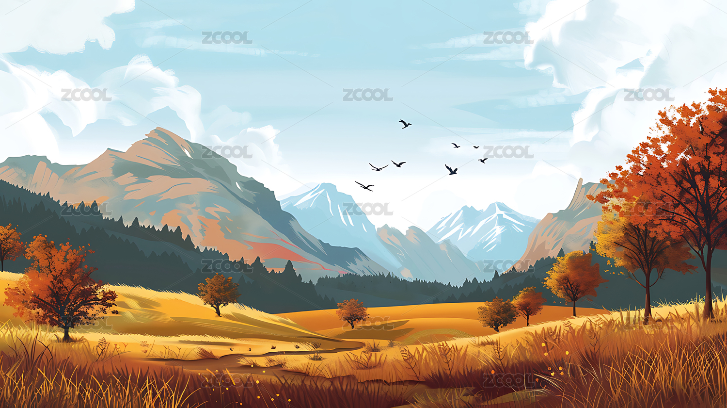 秋天秋季立秋秋分自然户外风景卡通漫画插画