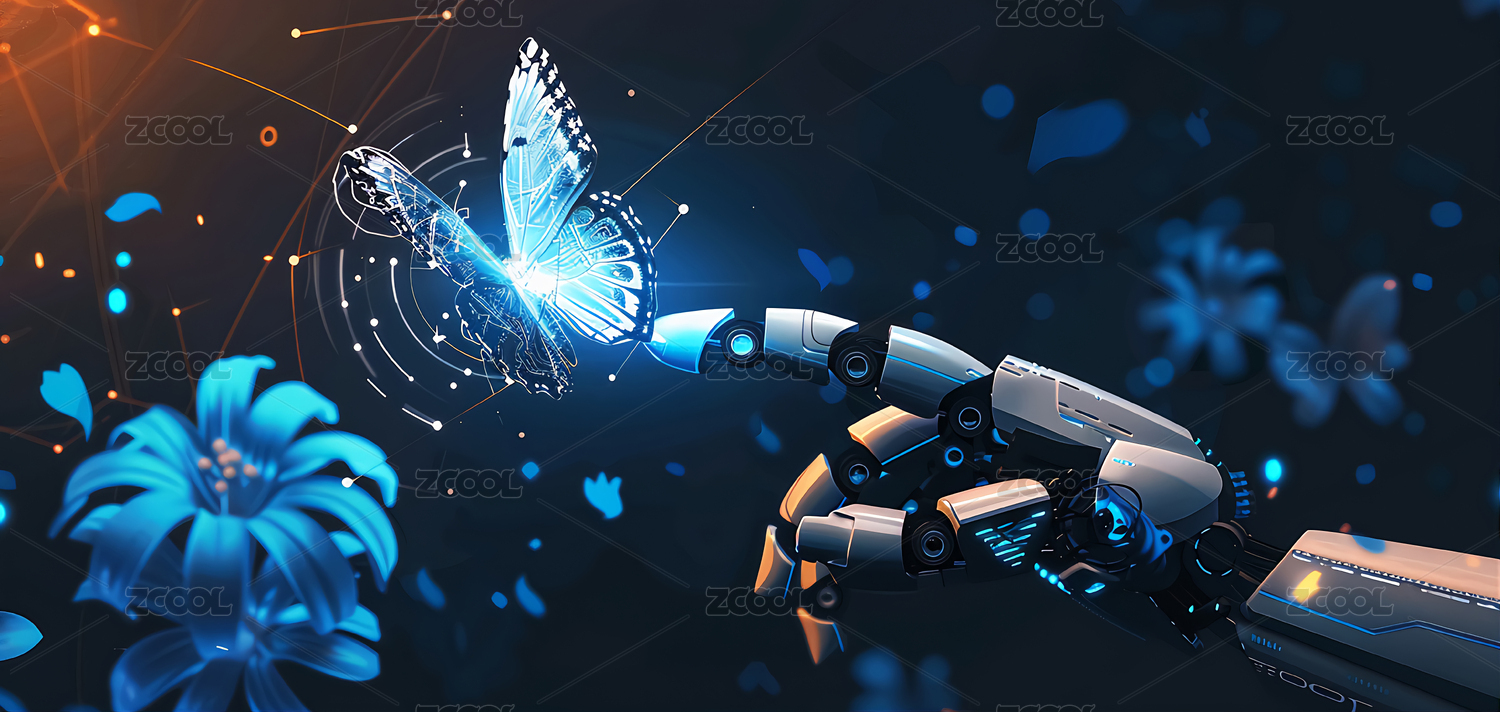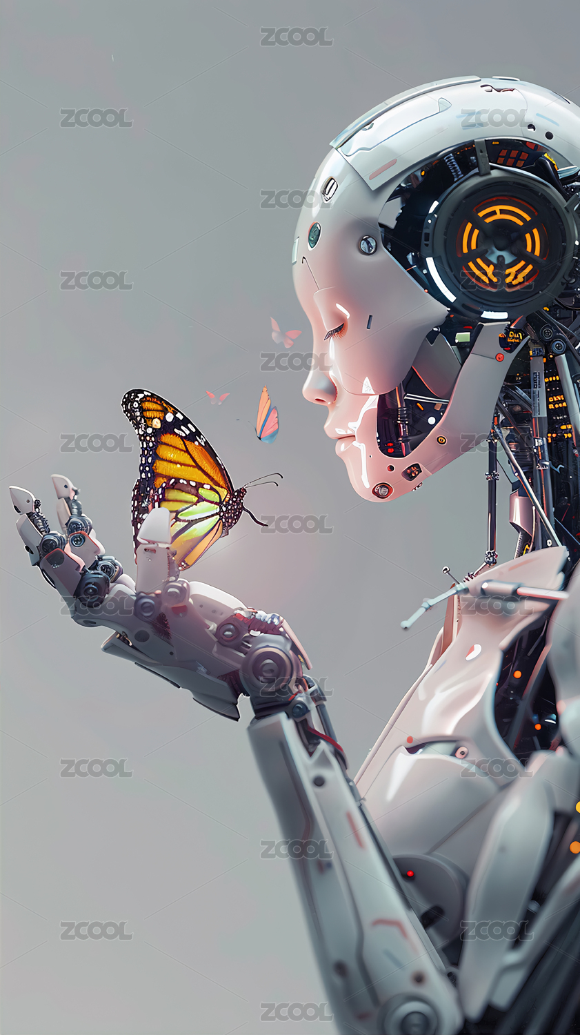 智能,机器人,蝴蝶,美丽,金色,背景,科技,数字,影像,白色