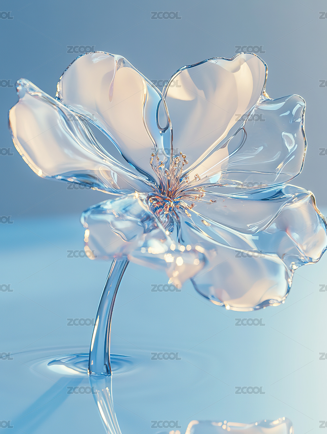 晶莹剔透的水晶花朵艺术