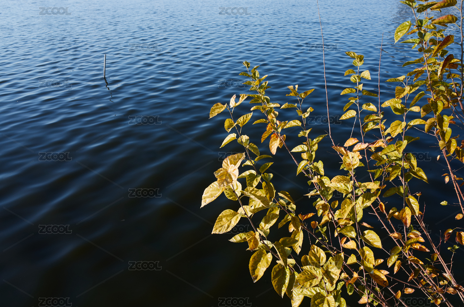 九寨沟秋色,静谧蓝色湖面和金秋黄叶