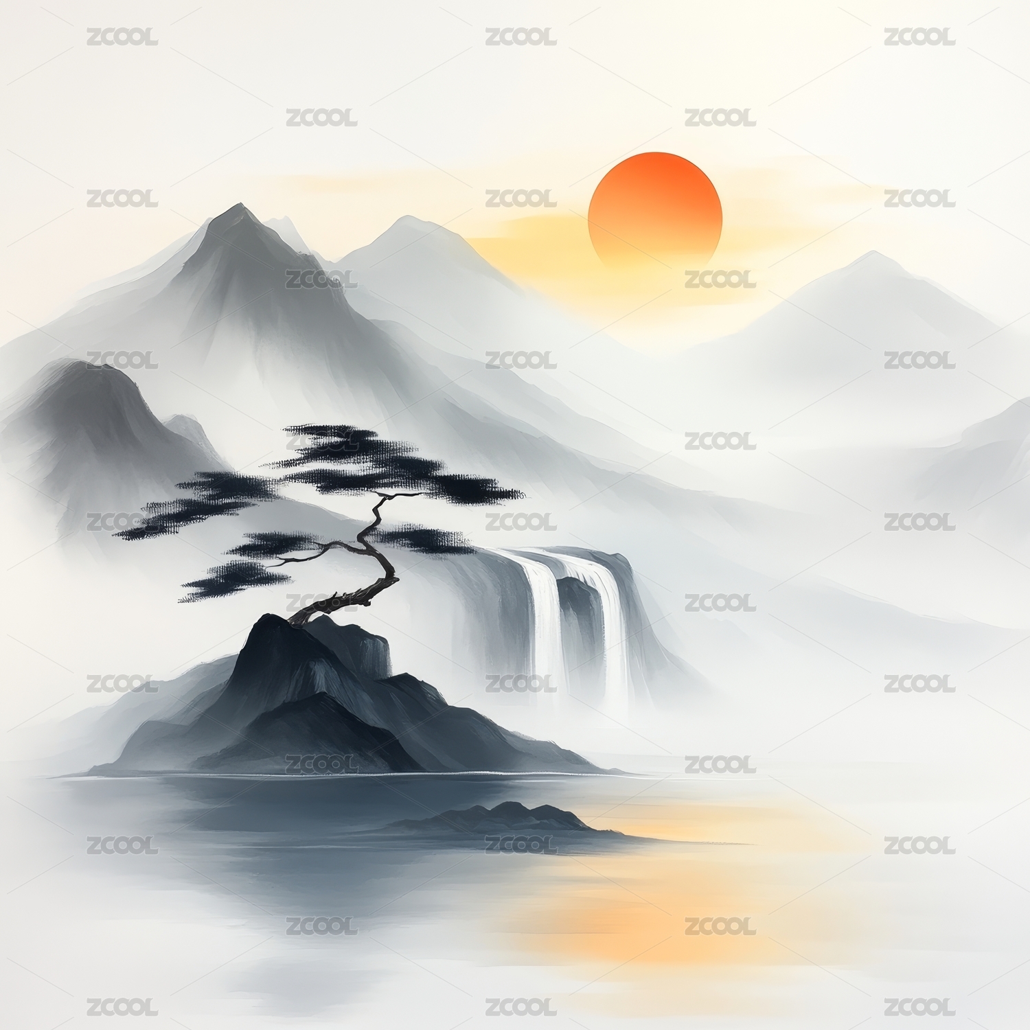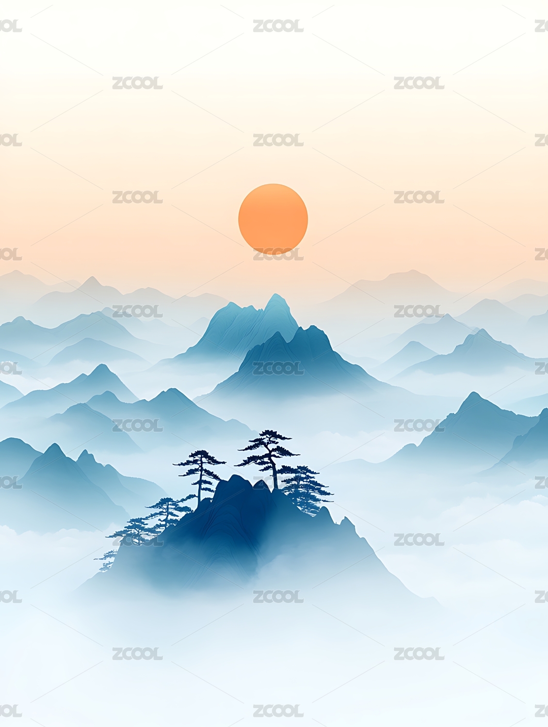 松树,国风,传统,插画,树,自然,户外,地形,设计,雾