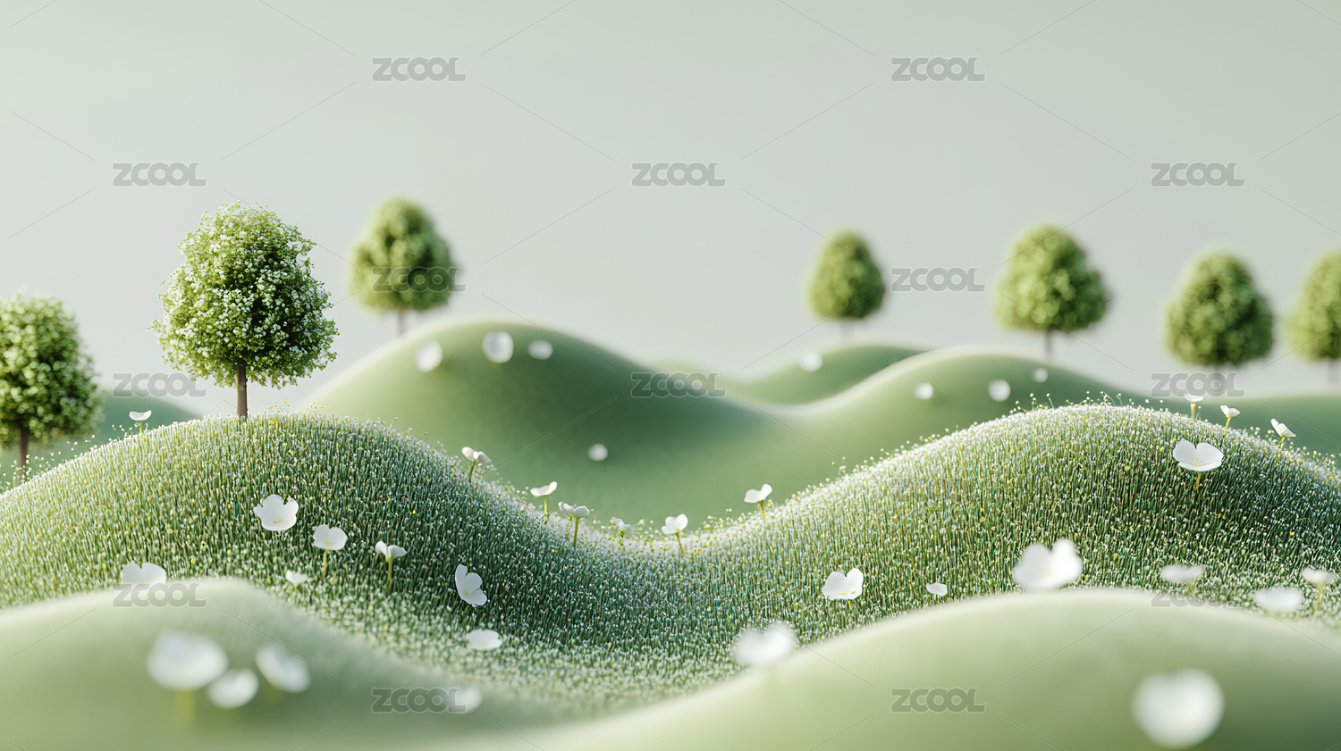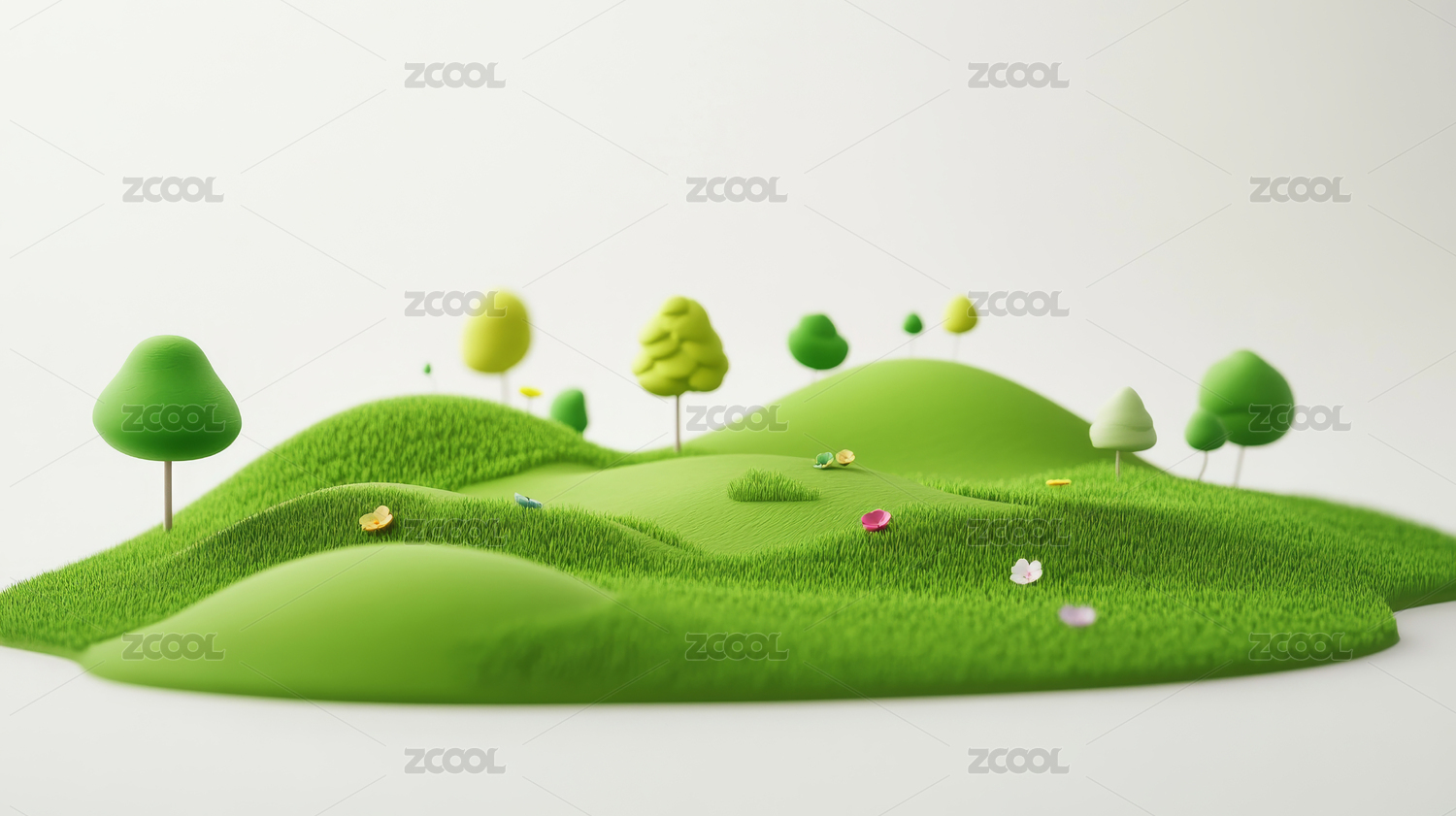 3D,卡通,立体,三维,背景,插图,草,草丛,草地,草坪