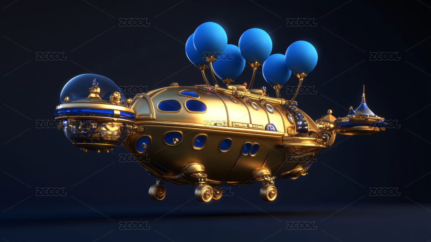 3D,三维,立体,运输,半空,充气,飞船,飞艇,飞行,浮动
