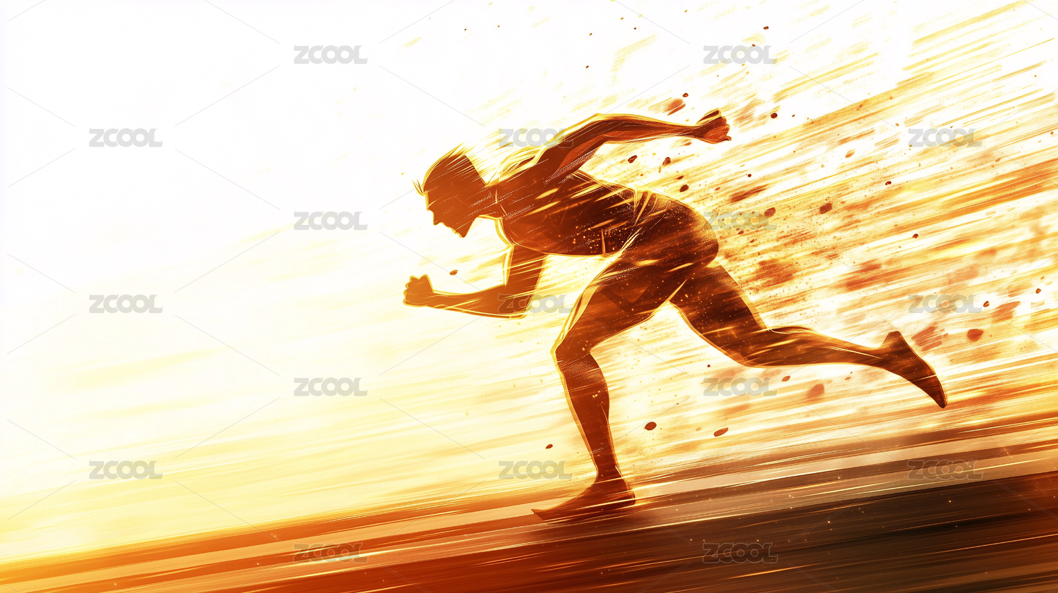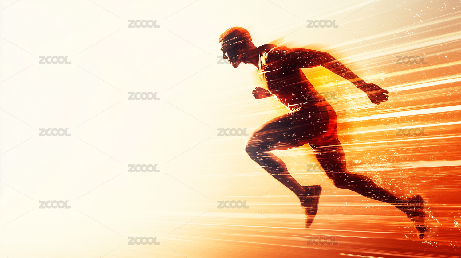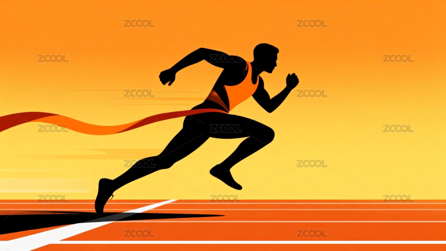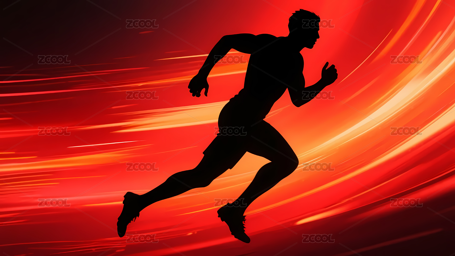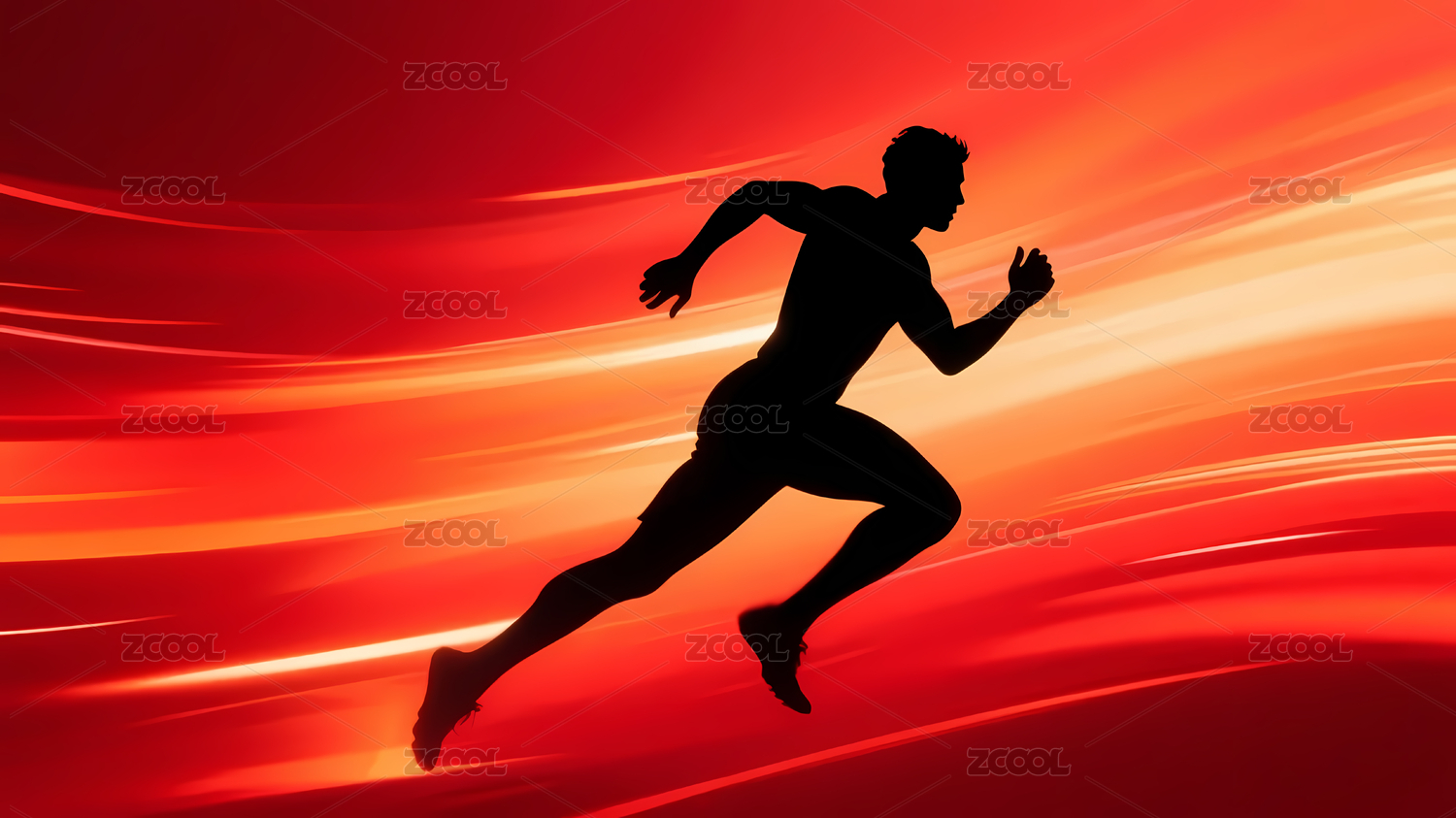 运动健将奔跑剪影,红蓝色彩背景,充满动感