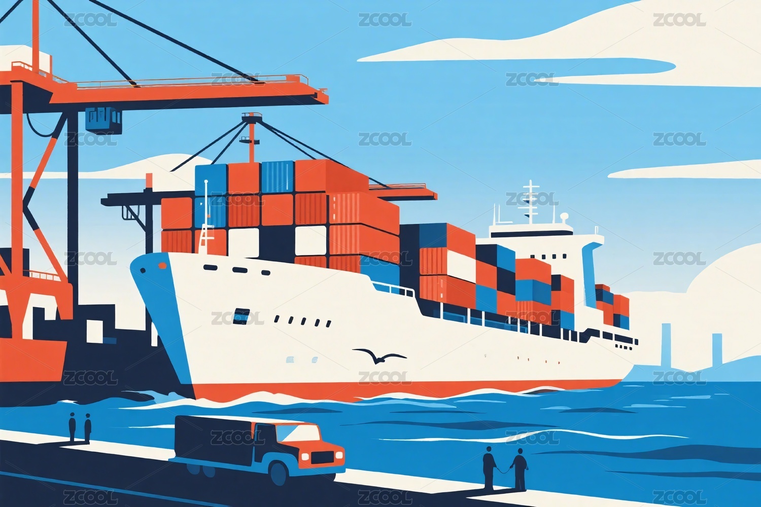 蓝色,商业,货轮,集装箱,港口,海运,航运,物流,运输,贸易