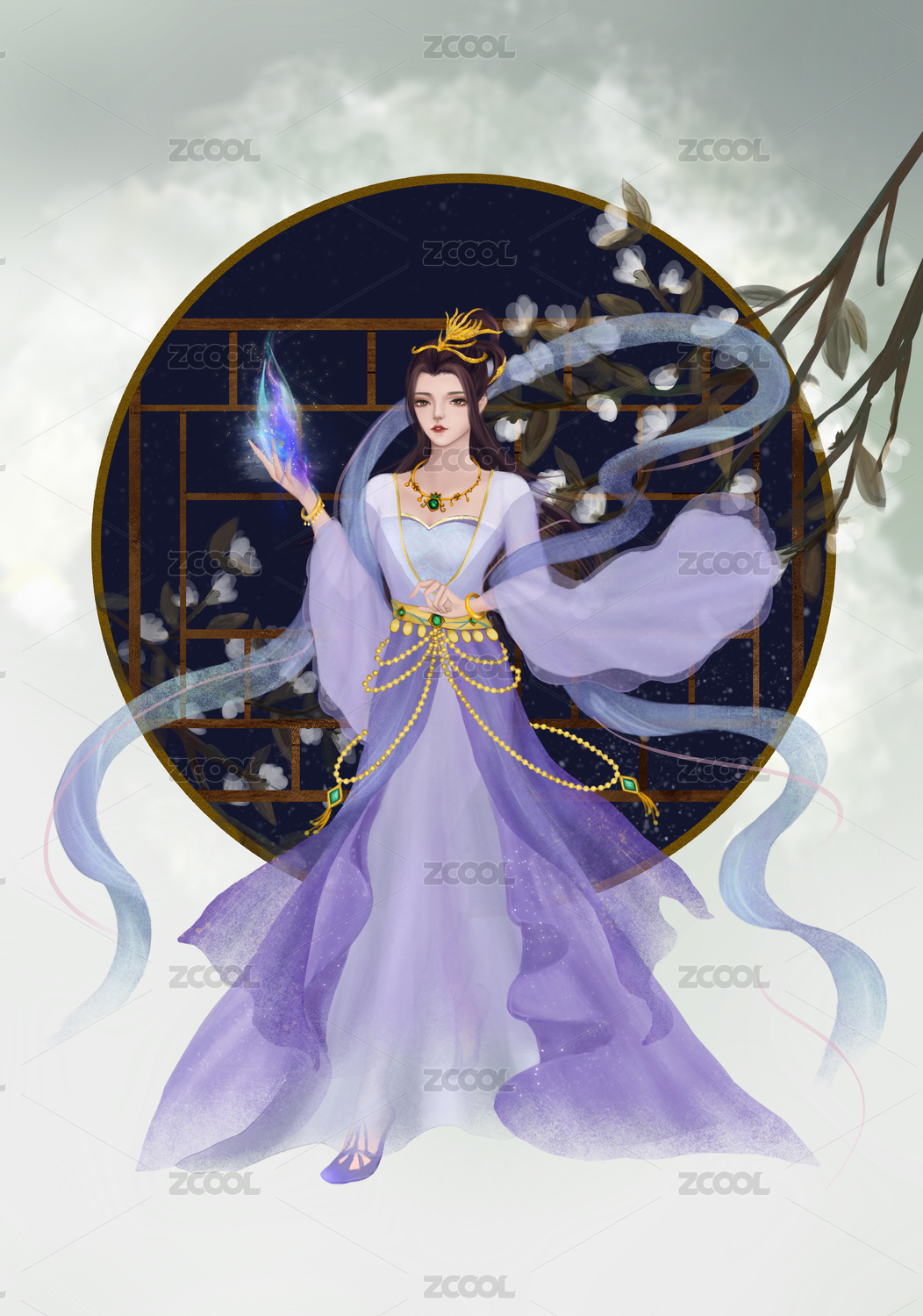 古风插画飘逸的紫衣仙女