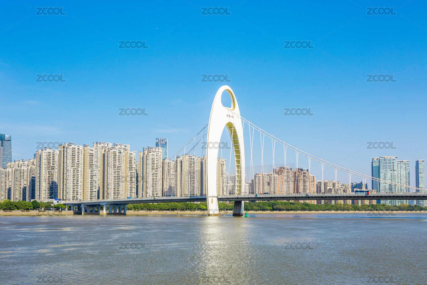 中国广州珠江新城CBD和猎德大桥城市天际线